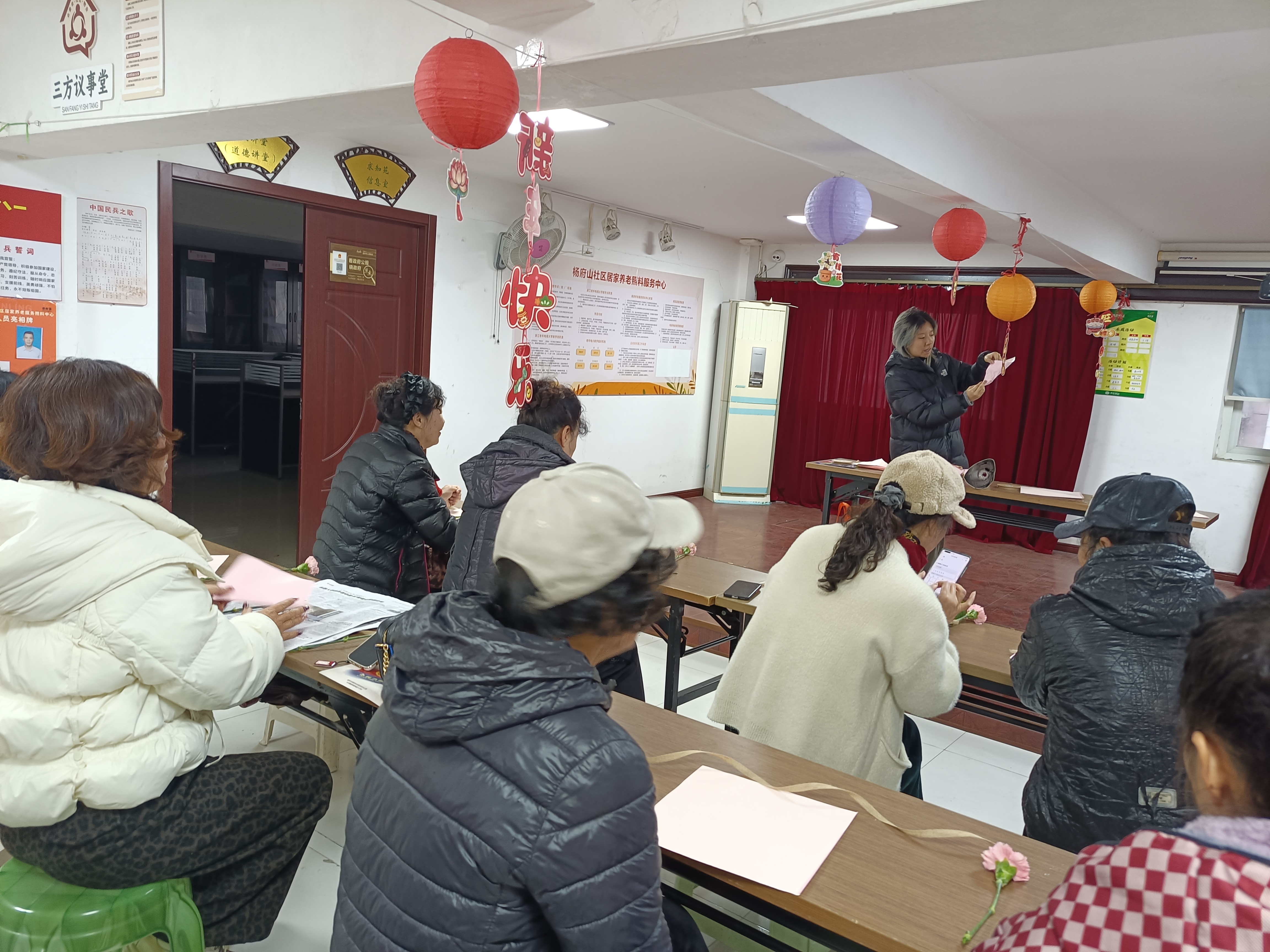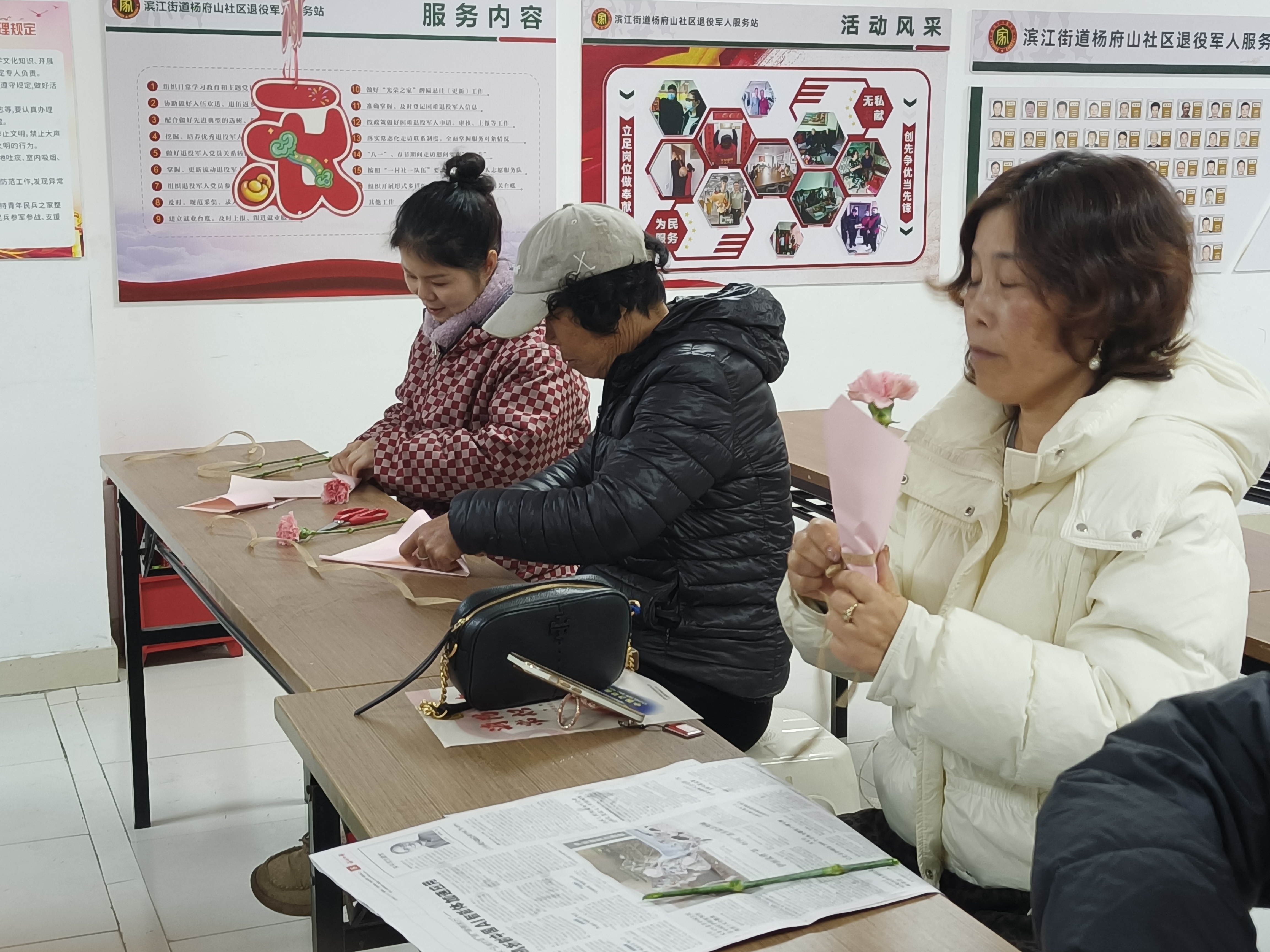 杨府山社区:“巾帼芳华 花香盈袖”手工花艺活动 春风送暖,花香满溢。为庆祝2026年“三八”国际妇女节,致敬辖区老年巾帼同胞,丰富老年女性朋友的精神文化生活,3月5日上午杨府山社区组织“巾帼芳华 花香盈袖”手工制作鲜花活动,邀请社区老年女性欢聚一堂,在动手实践中陶冶情操、收获快乐,共度美好节日。 活动现场,志愿者早早准备好鲜花以及丝带、剪刀等工具,并耐心细致地为大家讲解包装技巧与搭配要领。在大家的巧手创作下,原本简单的花枝经过修剪、搭配、包装,变成了一份份精致雅致的节日礼物,每一份作品都凝聚着独特的审美与心意,现场欢声笑语不断,邻里情谊在花香中悄然升温。 一支支绽放的康乃馨,承载着对老年女性的深深敬意与节日祝福,杨府山社区将持续整合资源,创新活动形式,为辖区老年群体提供更精准、更暖心的服务。