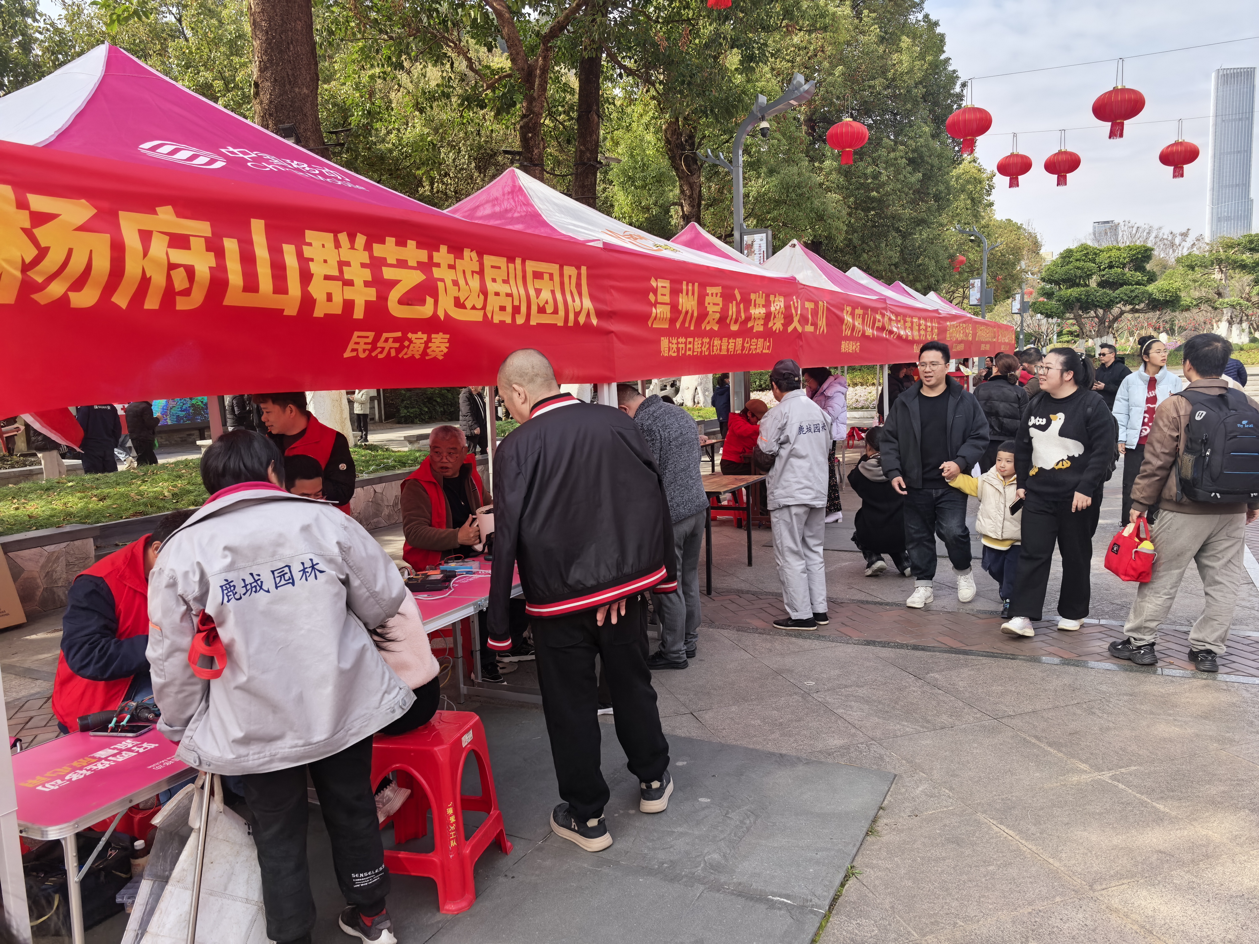 “她力量·更公益”致敬温州巾帼志愿者暨杨府山庆祝“三八”国际妇女节公益活动 为致敬温州巾帼志愿者与女性职工的奉献精神,传递社会关爱,营造浓厚的节日氛围。2026年3月8日下午,由温州市爱心璀璨公益发展中心、杨府山户外劳动者服务总站、温州移动滨江分局主办,多家单位联合承办的“她力量·更公益”致敬温州巾帼志愿者暨杨府山庆祝“三八”国际妇女节公益活动在杨府山公园南门户外劳动者服务总站前温馨举行。 活动现场,公益市集热闹开市,设有义诊、义剪、缝补铺、以物易物、法律咨询、颈椎调理等多个便民服务摊位,吸引了众多居民和户外劳动者前来参与,来自各个单位的志愿者们热情服务,传递温暖与关怀。与此同时,杨府山群艺越剧团队为现场的居民带来了一场精彩的民乐演奏会,悠扬的越剧唱腔和传统民乐交织,展现了中华传统文化的魅力,也为节日增添了浓厚的艺术氛围。 本次活动弘扬了志愿服务精神,凝聚了城市温暖力量,是对女性志愿者和职工辛勤付出的礼赞,也是社会各界共同推动公益事业发展的一次生动实践。
