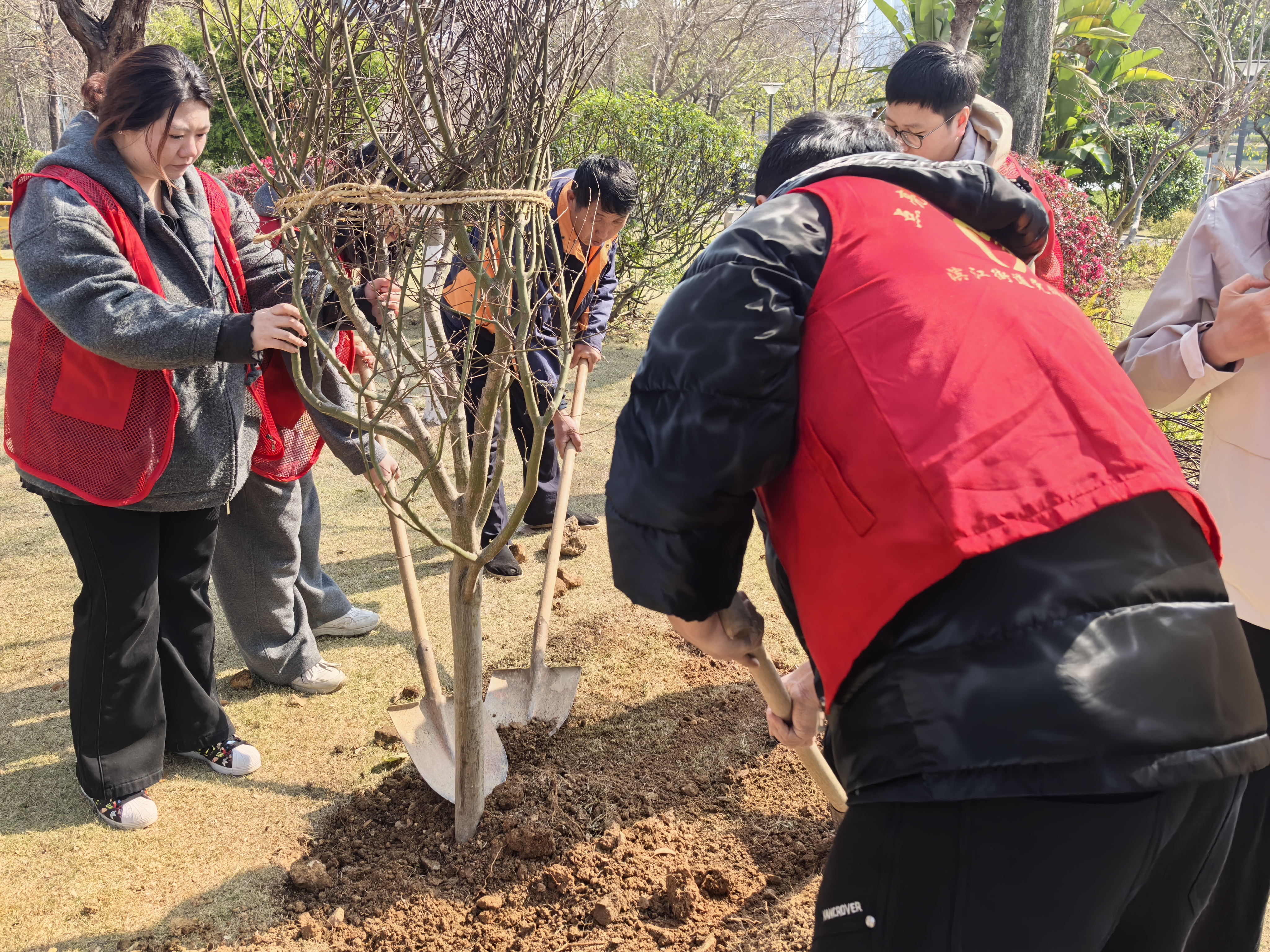 杨府山社区:“党建红引领生态绿” 主题植树活动 春风催新绿,植树正当时。为深入践行 “绿水青山就是金山银山” 理念,3 月 12 日植树节当天,滨江街道杨府山社区党委联合杨府山公园管理处与会展中心党支部共同开展 “党建红引领生态绿” 主题植树活动,以 “党建红” 引领 “生态绿”,为城市添绿、为家园增美。 活动现场,党员同志们分工协作、默契配合,挥锹挖坑、扶苗培土、踩实浇水,每一道工序都认真细致、规范有序。大家三五成群、干劲十足,一棵棵树苗稳稳扎根,承载着共建共享的初心与愿景。经过共同努力,一片生机勃勃的新绿跃然眼前,为杨府山公园增添了鲜活的生态底色。 此次共建植树活动,既是一次生态文明实践,也是一次支部联建的生动课堂。下一步,社区党委将持续深化与共建单位的联动协作,把植绿、护绿、爱绿融入日常,引导更多党员群众参与生态建设与基层治理,共同打造宜居宜业的绿色家园。