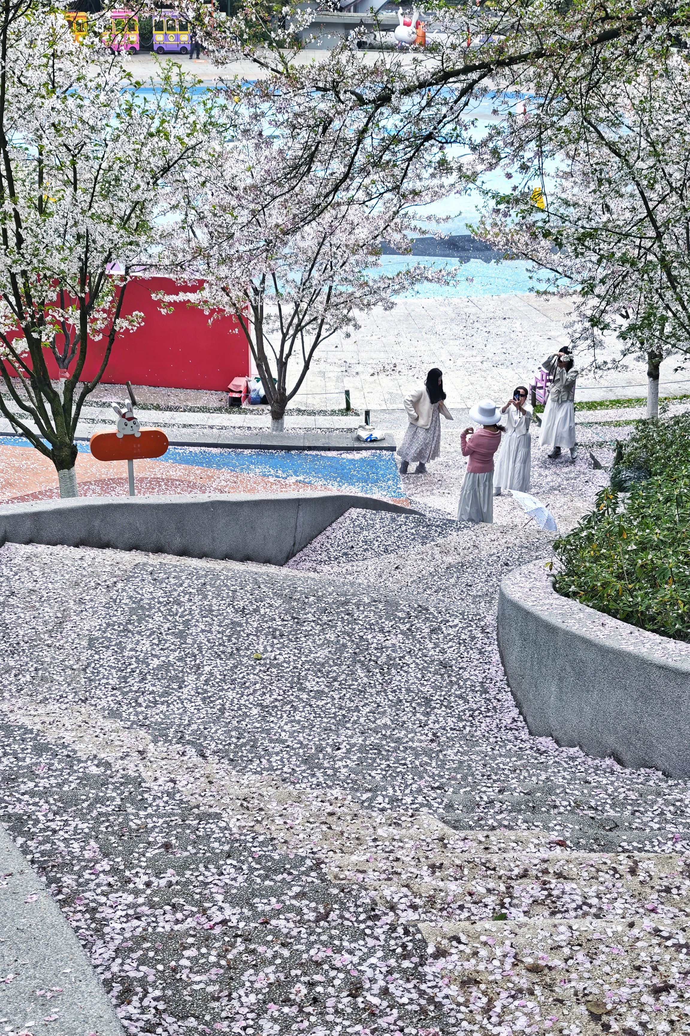花落(石阶,春满人间,抬头是漫天粉白,低头是满径芬芳。