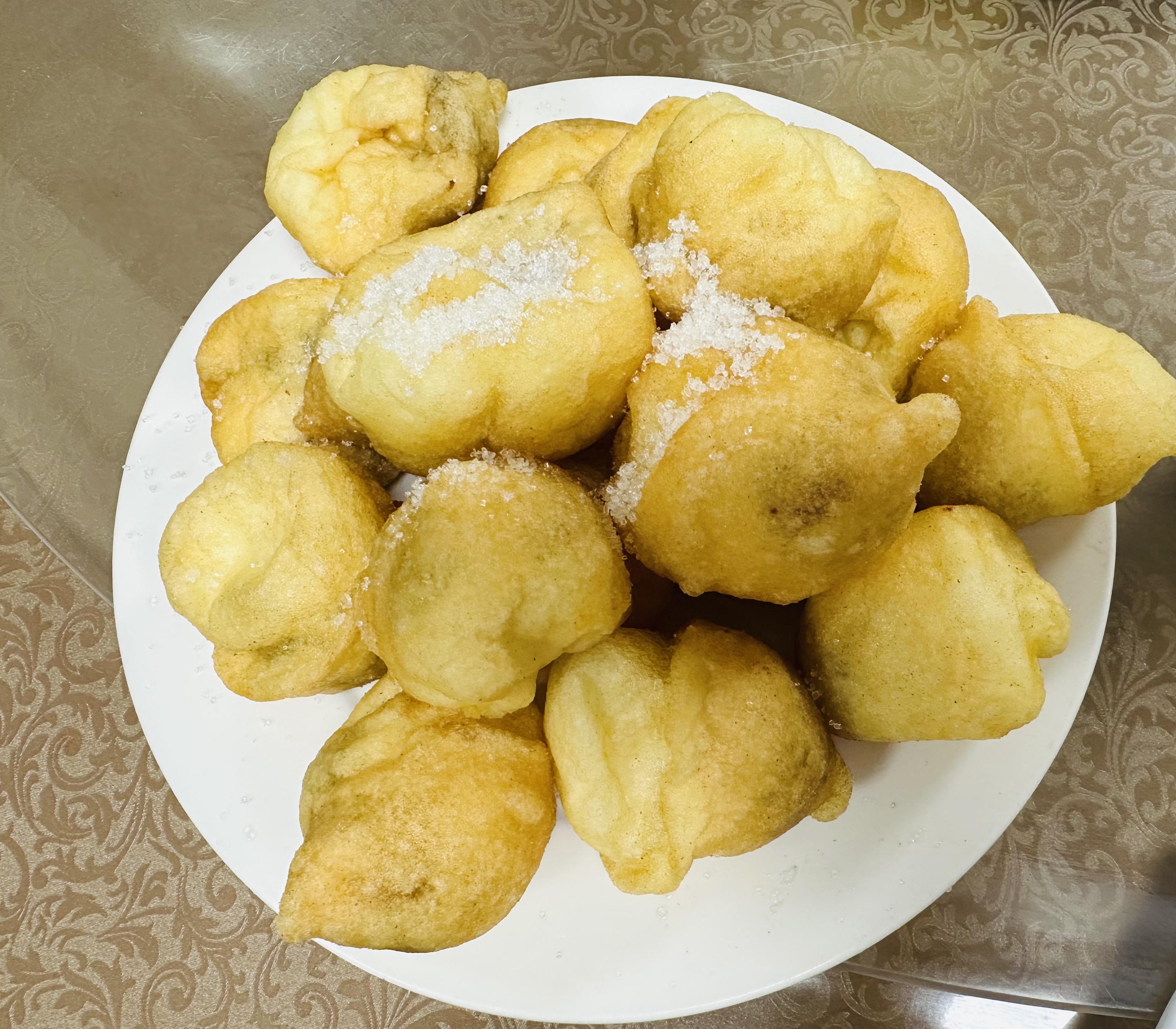 和陌生人拼了碗大米饭 文/蓝色咖喱粉 一个人出差,当地同事推荐我去小城的老街逛逛,七月流火,虽已是傍晚,仍暑热难当。突然起了风,刚想着难得有些许凉意,就见那风卷着黑压压的乌云,迅速朝头顶滚了过来,夏日的暴雨,说下就下,很快,豆大的雨滴就劈头盖脸地砸了下来,原本熙熙攘攘的老街瞬间空了大半。 我站在一家店铺的屋檐下躲雨,抬头一看,对面正好是间饭馆,就冒雨冲了进去。这是间极具年代感的老店,木楼木桌木地板,都能看见时间的包浆。前台大姐自豪地说:“我们店啊,离百年老店只差了31年!”我一听乐了,这大姐不但说话实诚,算术也灵。 这儿没有纸质菜单,更没有如今流行的扫码点单,墙上挂着一块斑驳的小黑板,用白粉笔写着菜名,这就是今日份菜单,哪个菜卖光了,就随手擦掉。在大姐的推荐下,我点了个爆炒猪肝、腐皮青菜、蛋清羊尾三个菜,其实我还想再点个茭白炒肉片,别看这菜名朴实得比家常菜还朴实,却是这间老店的当家菜,据说几乎是每桌必点,但大姐问过后得知我就一个人吃饭,坚决不给点了,说我们店的菜量很大,就这三个菜你已经绝对吃不光了! 点好菜问坐哪儿?前台大姐豪爽地一挥手臂,没有小桌子了,你就一个人,看哪儿空就坐哪儿,不行就跟人家拼个桌吧。 我环视了一圈,看到只有一张十人的大圆桌空着,就坐了下来,没一会儿,来了位年轻的男生,一看就像游客,也是一个人,跟我一样,看了一圈,见没了空桌子,就我一个人孤零零地坐在大圆桌旁,问了一声确定没其他客人,就在另一侧坐了下来。 过了会儿,我的爆炒猪肝先上了,看着这满满一大盘浓油重赤的爆炒猪肝,下饭神菜啊!我犹豫了好一会儿,还是打破了晚上不吃主食的习惯,要了一碗米饭。很快米饭上来了,用得不是普通餐馆常用的小巧饭碗,而是用一个介于碗与盆之间的大碗装得满满登登的,我吓了一跳,还以为上错了,向服务员求证这是我要的小碗米饭吗?服务员点点头,肯定地说这是小碗,如果大碗的话那就是一大盆了! 这时男生那边也开始上菜了,上的刚好是那盘我刚才纠结了很久想点没点上的茭白炒肉片,一看显然也是个下饭菜,男生叫住服务员,说要一碗米饭。我看看自己那一大碗米饭,犹豫了下还是对男生说:“你别点米饭了,我这儿分一些吧,我没想到这儿一碗米饭是这么大一碗,完全吃不完,实在太浪费了,我还没动过,分你一半行吗?……” 说着说着我声音低了下去,自己也觉得有些不好意思起来,越来越没有底气说下去。和陌生人分食一碗米饭,在边界感强烈的现代人中,这做法,实在有些太过唐突甚至冒犯了,我已经做好被拒绝的准备。男生听到我的提议,果然呆了呆,但很快反应过来,大概怕我窘迫,笑着点头说:“好啊!” 我顿时轻松愉快起来,赶紧拿了双没用过的筷子,给他拨了大半碗米饭。分完米饭,两人相视一笑,各自开动。 很快,我点的蛋清羊尾也上了,这是当地的一道有名的特色点心。虽然名称种有“羊尾”两字,其实跟羊尾巴没半毛钱的关系,将打发的蛋清裹上豆沙馅油炸而成,大概是成品蓬松洁白,形似羊尾而得名吧。上来后,我又吓了一跳,这一大盘圆滚滚的蛋清羊尾,颤颤巍巍地堆了个满盘,吃不完啊完全吃不完! 这时男生也好奇地看着这盘蛋清羊尾,显然也没吃过,我赶紧邀请他尝一尝。有了前面分食一碗米饭的饭搭子基础做铺垫,男生没客气,很爽快地夹了个蛋清羊尾,一尝,赞不绝口。我也吃了一个,果然是名不虚传,蛋清柔嫩,入口即化,豆沙里加了猪油和糖桂花,甜而不腻,香而不俗。 作为回报,他请我分享他点的菜,于是,我吃到了刚就想点的那道朴实得不能再朴实的茭白炒肉片。不愧是老店的当家菜,肉片外皮焦香内里鲜嫩,肉汁饱满,茭白清甜脆爽,没想到如此朴素的食材粗犷的做法,竟能带来如此惊艳的口感。 忍不住庆幸,因为那半碗米饭,他没错过那道特色名点——蛋清羊尾;我呢,没错过这道当家菜——茭白炒肉片。