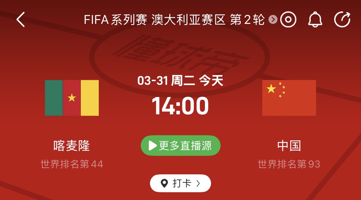 #有奖竞猜# 本轮国际比赛周期最后一个比赛日,中国之队三箭齐发。能否延续之前的势头,保持不败。我们一起为中国之队加油👏 场次: 1.FIFA 澳大利亚赛区第2轮 26.03.31 14:00 喀麦隆vs中国 2.中国之队邀请赛 义乌赛第2轮 26.03.31 19:35 中国U19vs澳大利亚U19 3.中国之队邀请赛 西安赛第3轮 26.03.31 19:35 中国U23vs越南U23 竞猜:三场比赛的总进球数。 (最终结果以中足联官方数据为准) 竞猜截止时间:今日首场中国队比赛开球前。 参与者必须为潮圈“追星”族关注者,并加入群聊。 奖品: 1.足球周边纪念品。