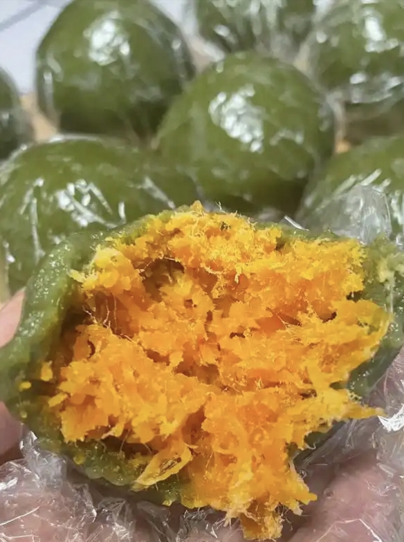 有蛋黄月饼,当然也应该有蛋黄的青团了,做食物的馅儿其实大径相同。可以用不同的原料。青团的外面做法一样,除了艾草就是糯米粉,揉成团,揪成剂子,包上蛋黄馅子,就是蛋黄青团了。