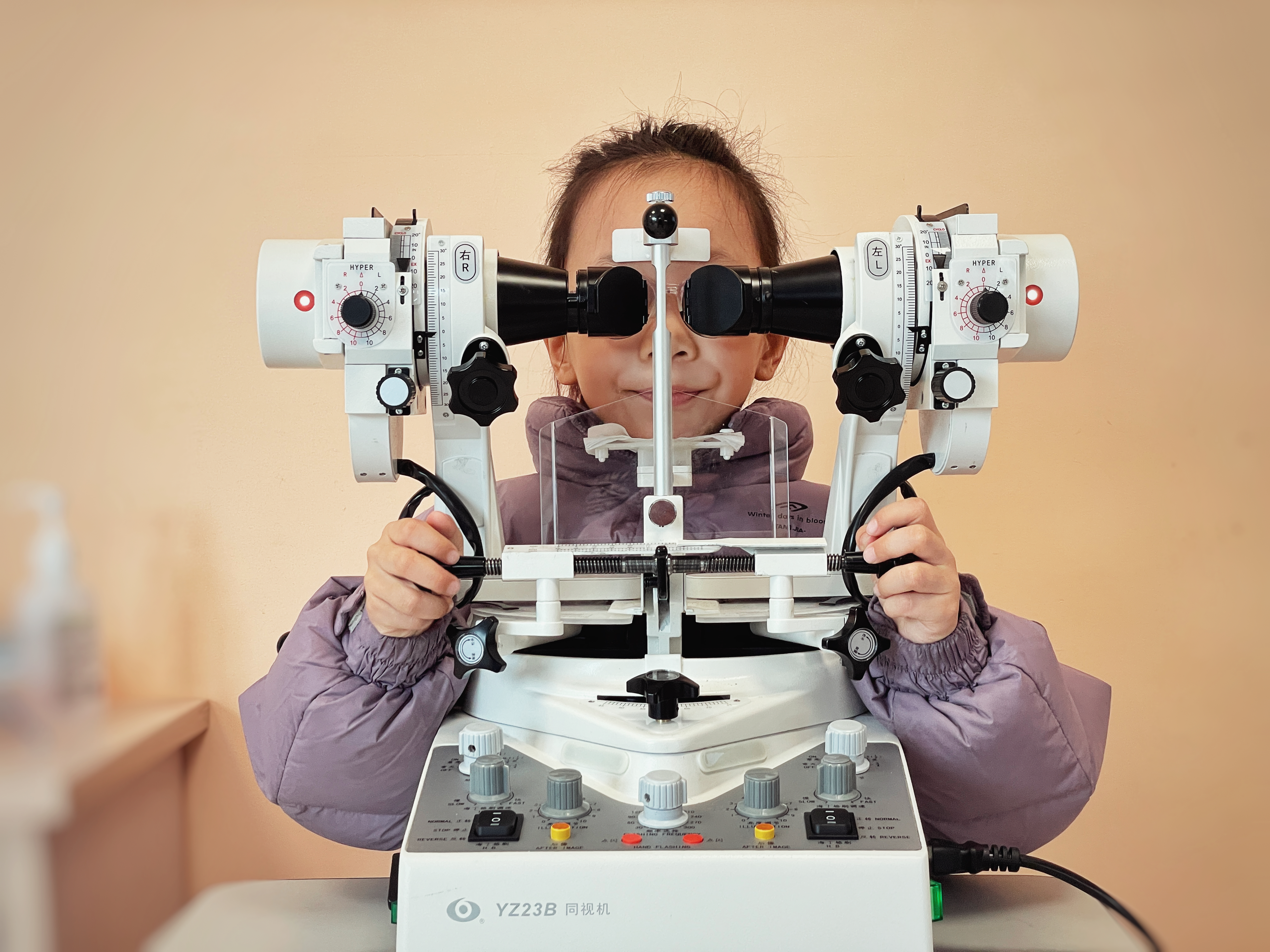 《👀 别让“看不清”偷走孩子的未来!》近视防控之视功能同视融像训练:守护孩子清晰视界!在近视低龄化趋势日益严峻的今天,单纯的视力检查已不足以全面评估孩子的眼健康状况。同视机作为视功能检查与训练的核心设备,正成为近视防控体系中不可或缺的一环。图中孩子正在使用的YZ23B同视机,正是通过科学的同视融像训练,帮助建立稳定的双眼视觉,从根源上减缓近视进展。 同视融像训练,是针对双眼视觉功能异常的针对性干预。许多近视孩子并非单纯的屈光问题,而是存在双眼视功能失衡——如集合不足、融合范围狭窄等。这些问题会导致眼睛在看近时过度疲劳,大脑为了适应模糊影像,会加速眼轴增长,进而推动近视加深。同视机训练通过分级刺激,先帮助孩子建立同时视,让双眼能同时接收并感知同一物体;再进阶到融合功能训练,使大脑能将双眼看到的相似图像整合为一个清晰的立体像;最终形成立体视觉,提升对空间深度的感知能力。 训练过程温和且充满互动性。孩子通过目镜观察特制的视标,双手操控机器调节瞳距与角度,在趣味任务中逐步拓展融合范围,增强眼外肌的协调能力。这种主动式训练不仅能有效缓解视疲劳,更能建立起稳定的双眼视觉基础,让眼睛在看远看近时都能高效协作,减少因调节紊乱带来的近视增长风险。 对于家长而言,需明确:同视融像训练并非“治疗”近视,而是通过优化视功能,为近视防控筑牢防线。它与户外活动、科学配镜、控制用眼时长等措施相辅相成,共同构成了全方位的近视管理方案。尤其是在近视进展较快的儿童青少年阶段,早期发现视功能异常并及时干预,能显著延缓眼轴增长,避免发展为高度近视。 守护孩子的清晰视界,需要科学与耐心。同视融像训练,正是用专业的力量,让每一双眼睛都能协调工作,在成长路上看清更远的未来。 👀 别让“看不清”偷走孩子的未来!同视融像训练,用科学方法优化双眼视功能,从根源缓解视疲劳,为近视防控添砖加瓦✨ #儿童近视防控 #视功能训练 #爱尔眼科 #守护清晰视界#眼睛健康从小抓起#镜头里的故事#