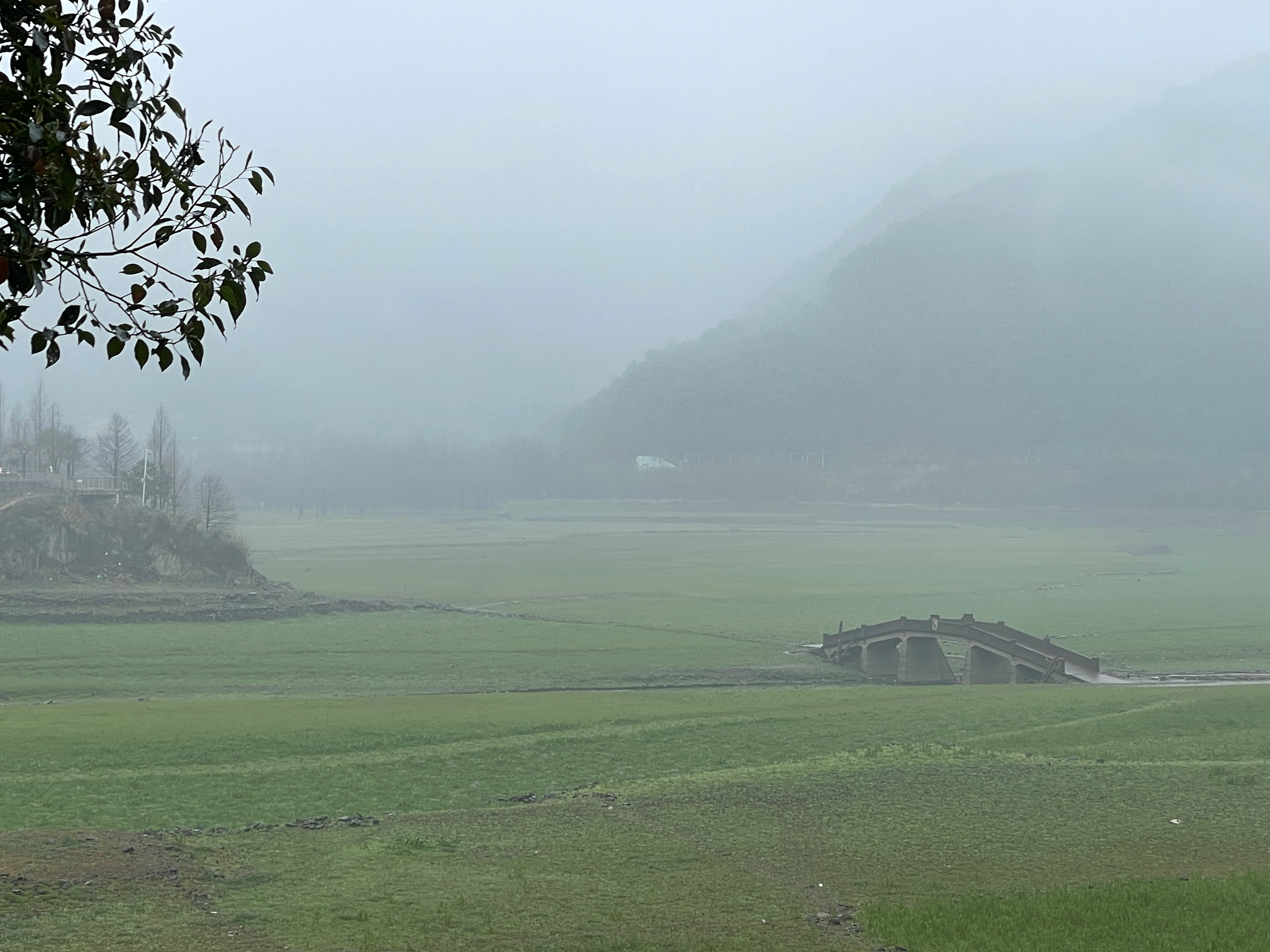 《清明:雨雾童村,青桥重见!》雨雾裹着清明的湿意,漫过鄞州童村的山坳,将干涸的水库铺成一片青嫩的草甸。百年的栋青桥从水底缓缓现身,斑驳的石拱斜倚在泥滩上,像一位沉睡初醒的老者,在雾里静静打量着这片既熟悉又陌生的土地。 我站在香樟的枝桠下,看雾丝从叶尖滚落,打湿衣襟。风里混着青草与春泥的气息,混着远处村落隐约的爆竹声,是江南清明独有的味道。这雾太浓了,浓得看不清山的轮廓,却把时光拉得很长,让这座桥的故事在雨雾里慢慢舒展。 祖辈说,这座栋青桥曾是童村人往来田垄的要道,春播时踏过青秧,秋收时载过稻穗,桥板上留过孩童的嬉闹,也载过乡人挑担的沉重。后来水库筑成,桥身被碧水淹没,渐渐成了童村人记忆里的传说。如今水位退去,桥身重见天日,石缝里还嵌着当年的泥沙,桥栏上的纹路被水流磨得温润,却依旧稳稳托着岁月的重量。 清明的雨雾里,乡人循着田埂走来,在桥边驻足。有人指尖抚过冰凉的石栏,轻声念起故人的名字;有人蹲在桥洞下,捡拾被水流冲刷的旧瓷片。风掠过桥面,带起一阵细碎的声响,像是桥在轻声应答,又像是那些远去的时光,在雾里温柔地回望。孩子们在桥边奔跑,笑声撞在雾里,碎成一片清亮的光,让这座百年老桥在清明的思念里,又添了几分鲜活的气息。 雨停了,雾却没有散。阳光努力穿透云层,在草甸上洒下细碎的光斑。我沿着田埂慢慢走近栋青桥,看石拱上长出的细草,看桥身斜倚的姿态,忽然明白:有些东西从未真正消失,它们只是在时光里沉睡着,等一个清明的雨雾,等一个重逢的时机,重新回到人们的眼前。 雾还在飘,把思念与往事揉进每一缕风里。栋青桥静静卧在童村的草甸上,看春草又绿,看雨雾又来,看乡人在清明的时节,带着对故人的怀念,对岁月的敬畏,从桥边走过,走向山的深处,走向时光的远方。#治愈系风景打卡 #乡村晨雾美景 #清明童村#镜头里的故事#
