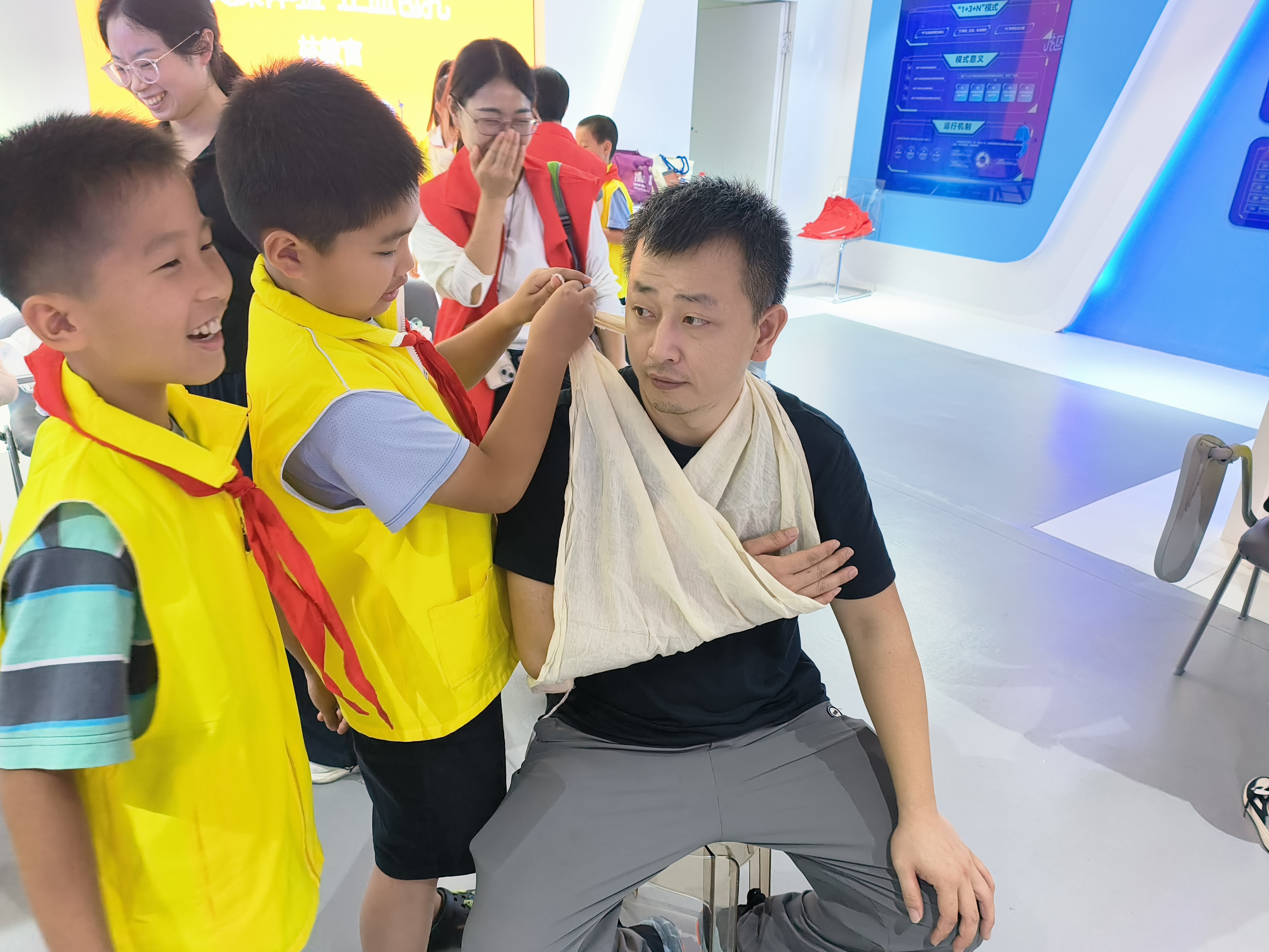 今天下午,我跟随公益小天使来到蒋村街道应急消防管理站,收获满满。林教官用生动有趣的方式,为我们讲解了应对自然灾害的知识,带我们认识了各种预警信号的含义。我们还动手学习了应急救护技能——螺旋包扎、手臂三角巾包扎,既实用又有意义。最后,我们走进社区分发宣传单,将所学知识传递给更多人。这次活动不仅增强了我的应急安全意识与动手能力,更让我体会到帮助他人的快乐。真是充实又难忘的一天! ———杭州市公益小天使 李琰