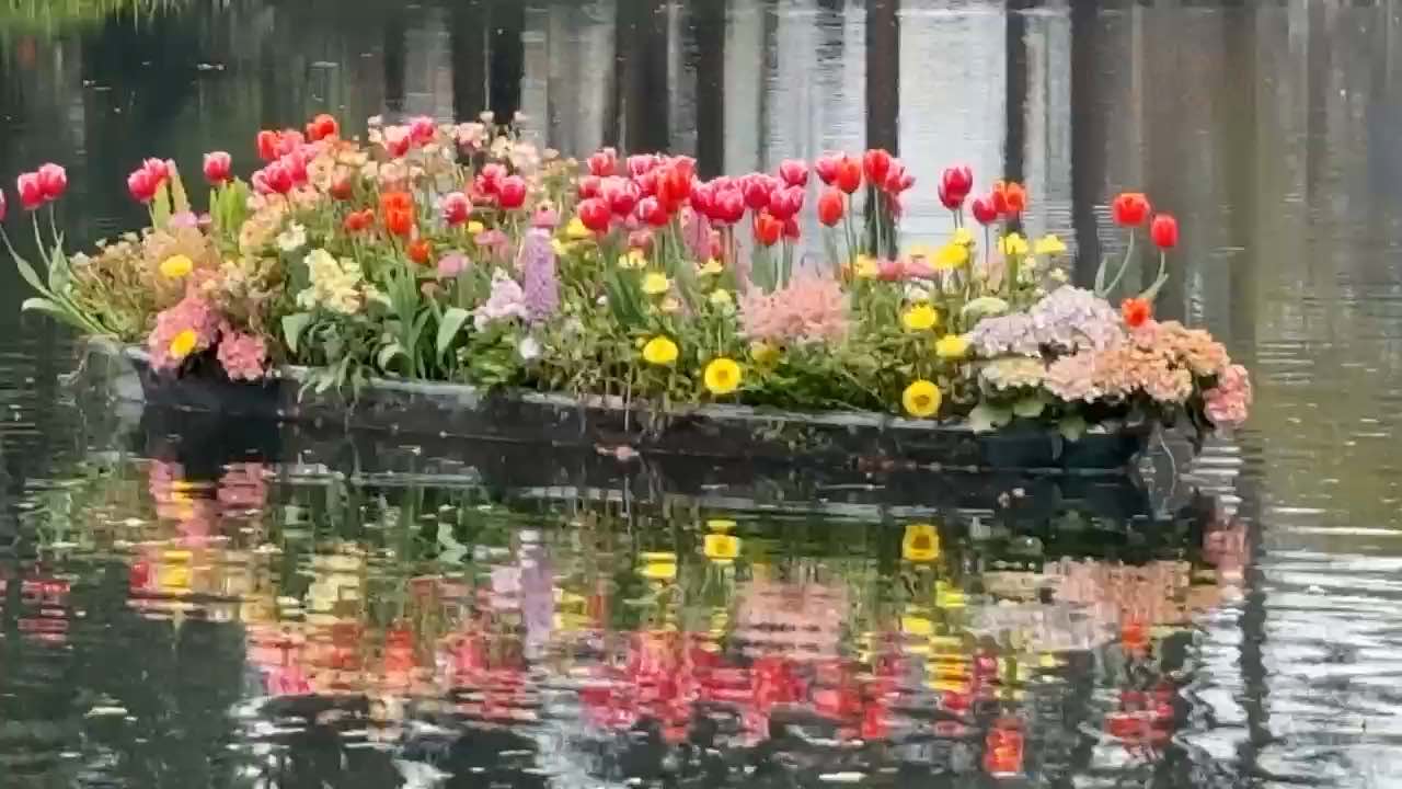 今早太子湾的大红鲤鱼与鸳鸯同框戏水郁金香偶尔也来凑凑热闹