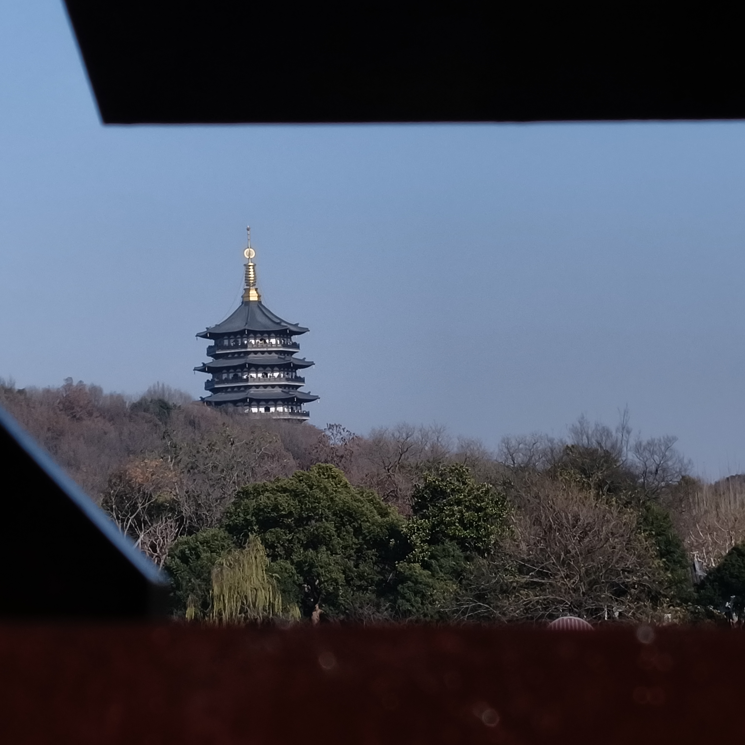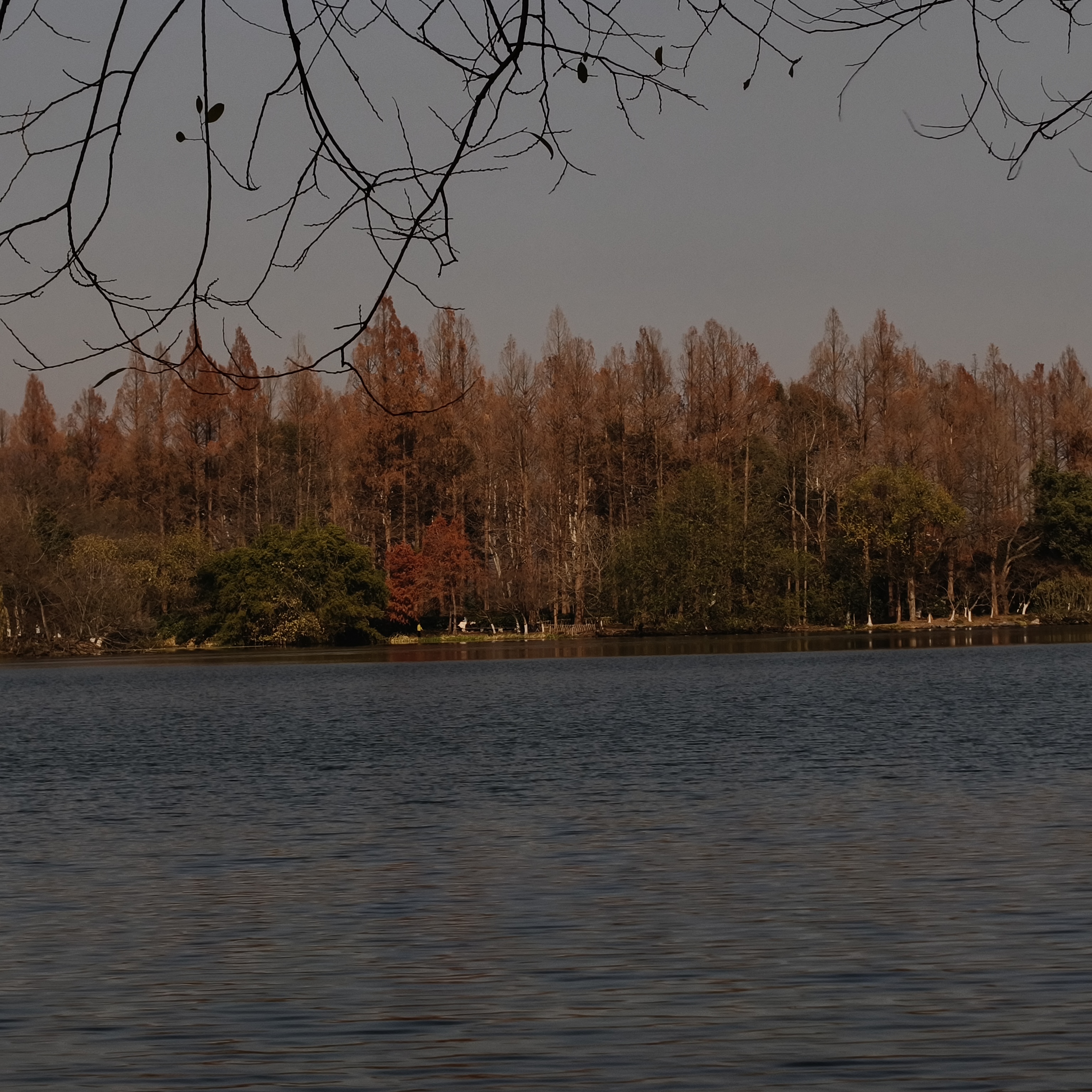 夕阳熔金,湖光山色共徘徊。