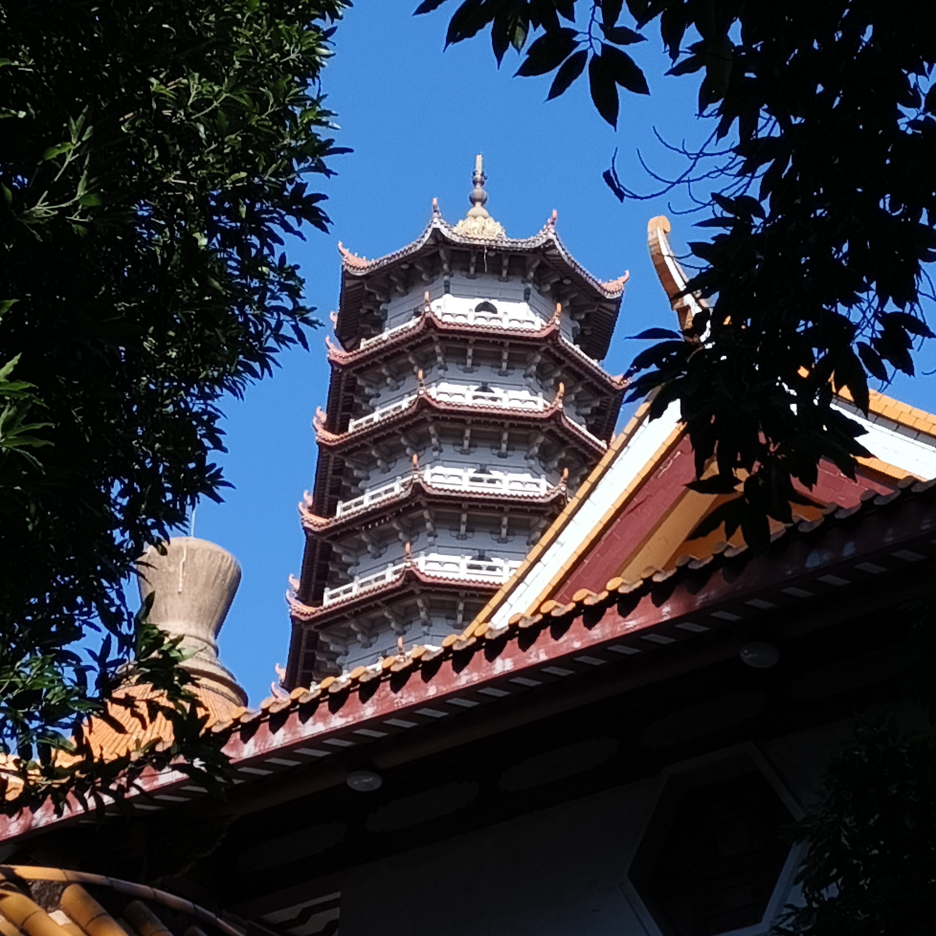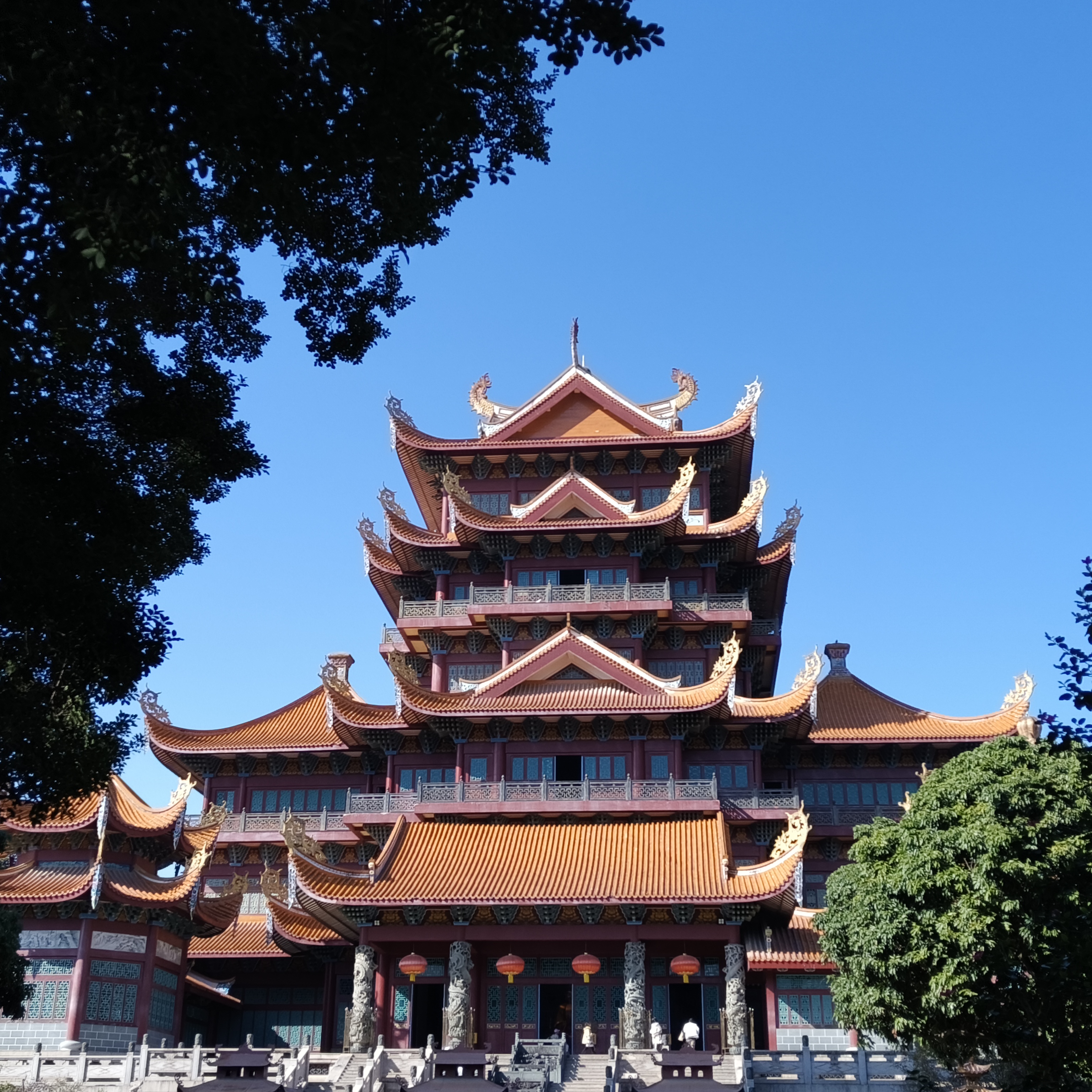 檐角挑起蓝天,红瓦藏进绿树,一寺禅意落榕城。