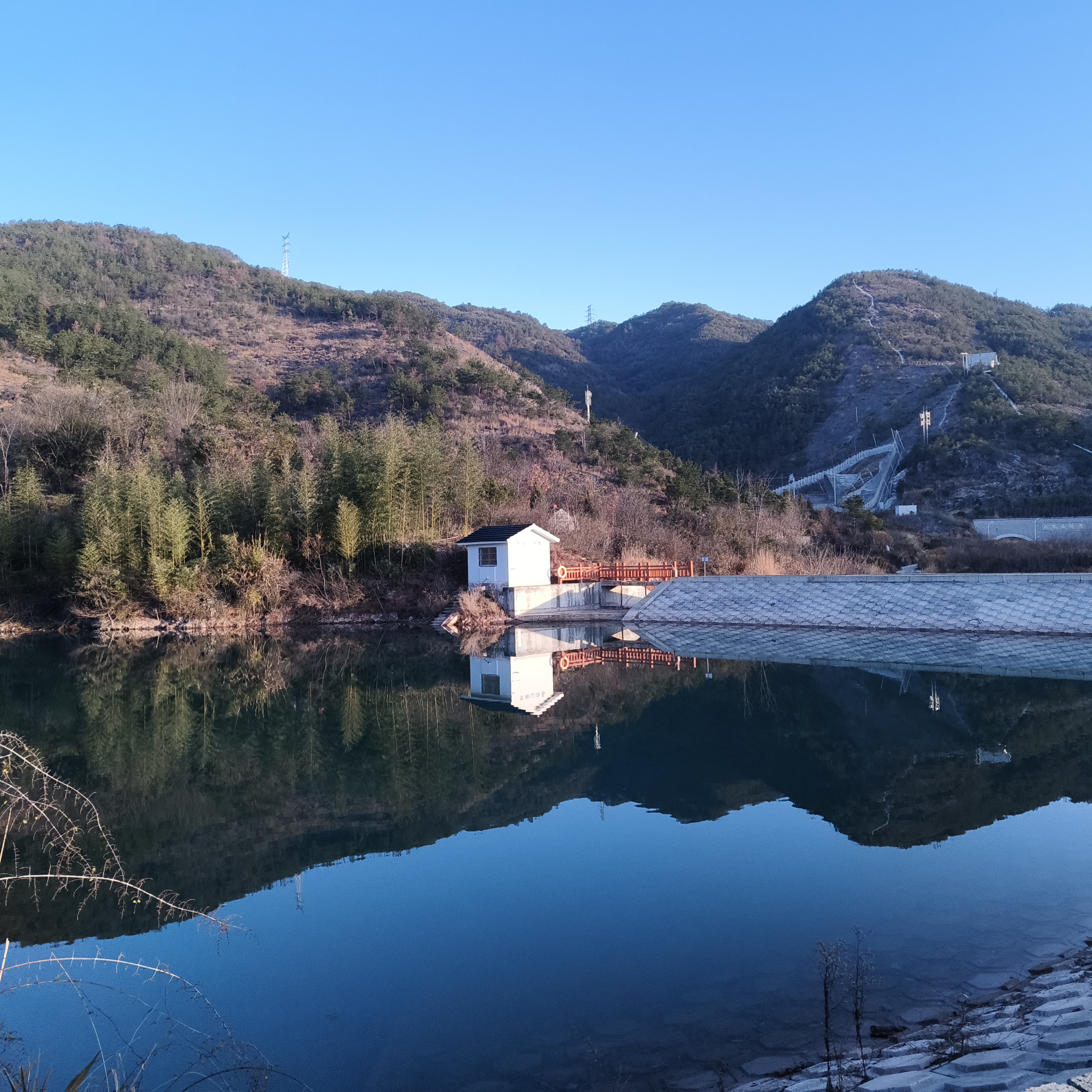 白墙黑瓦飞檐下,山色水影入画来