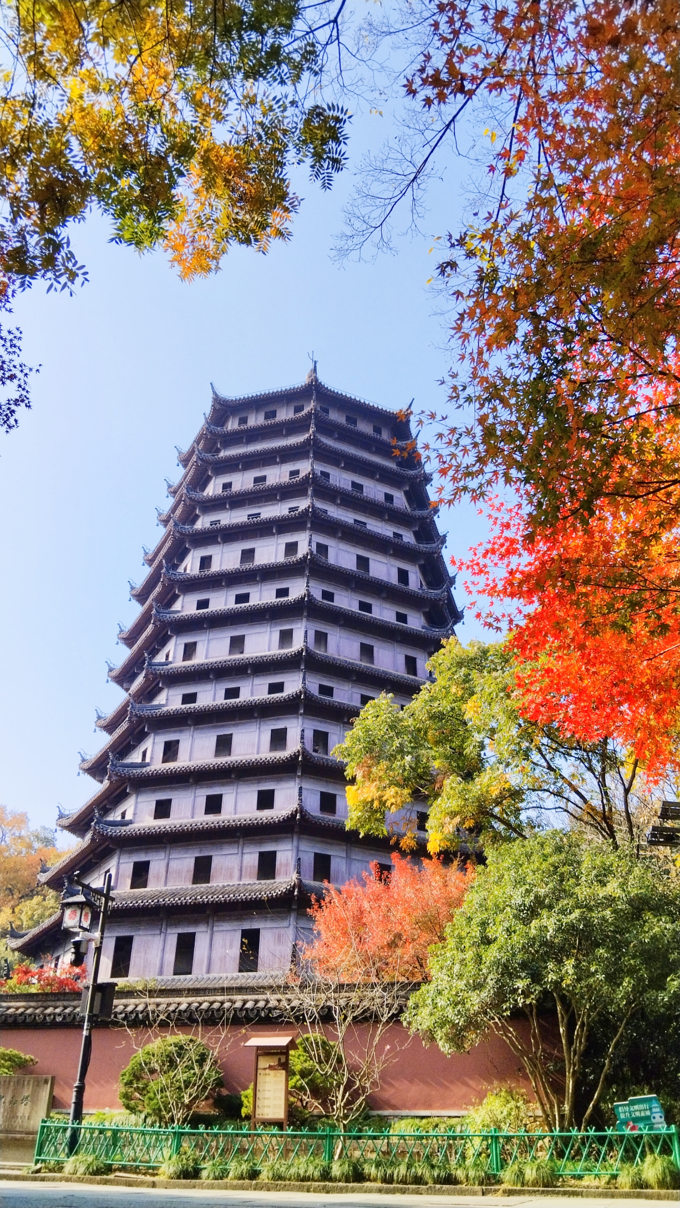 六和塔的秋是枫叶的狂欢,古塔的低语,是大自然与人文的完美交融