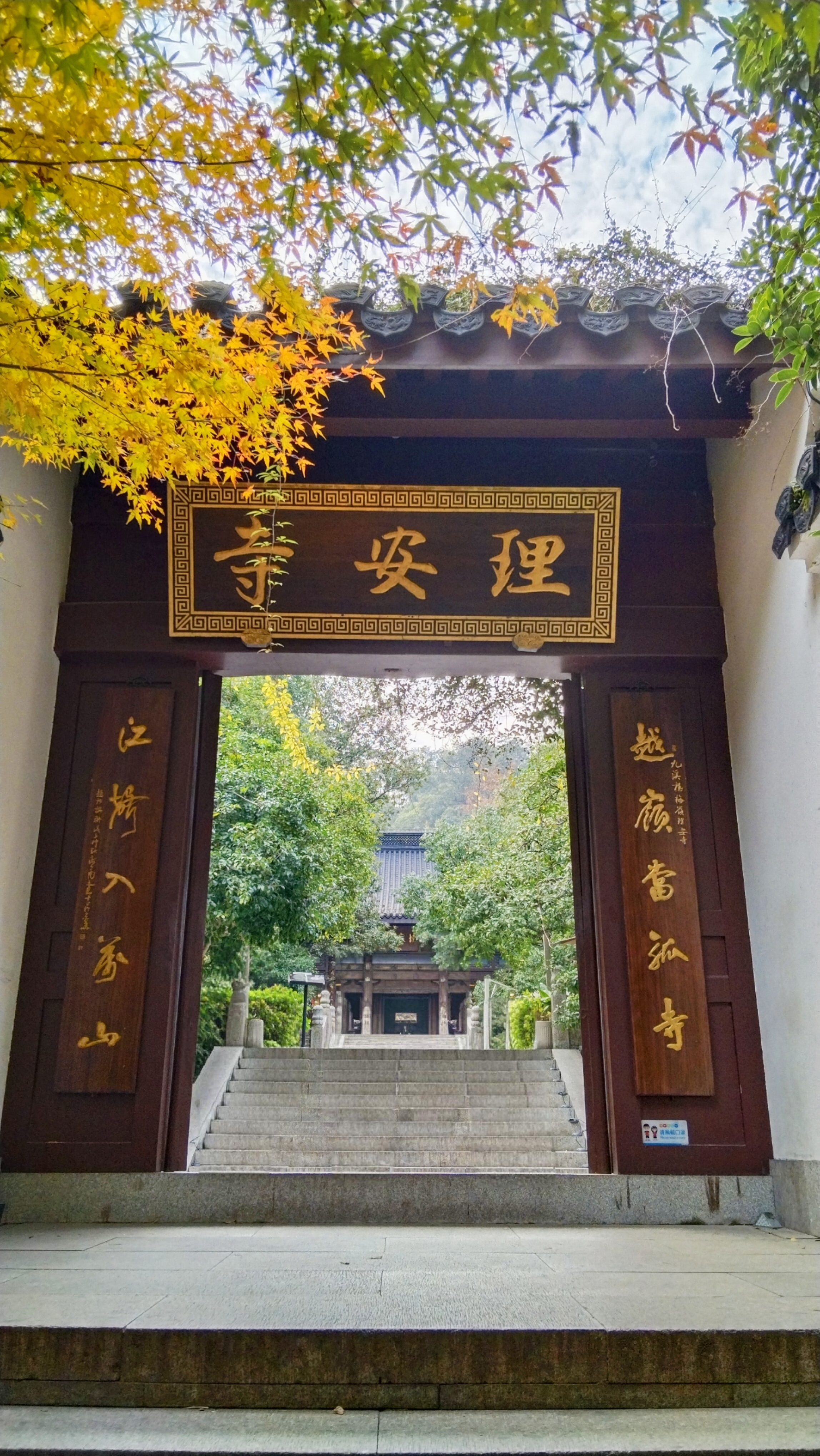 理安寺的秋,枫叶红了,佛像笑了。台阶走一走,烦恼丢一丢~