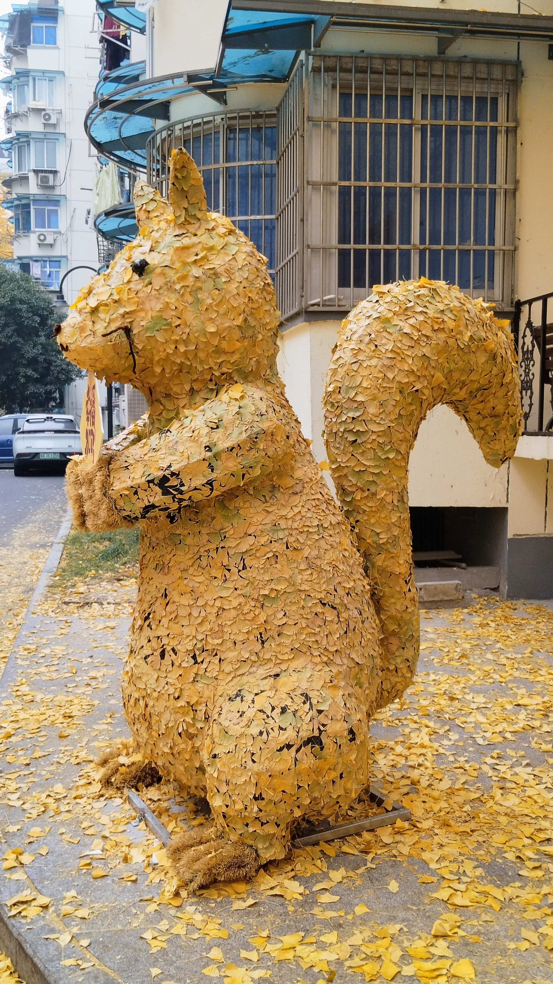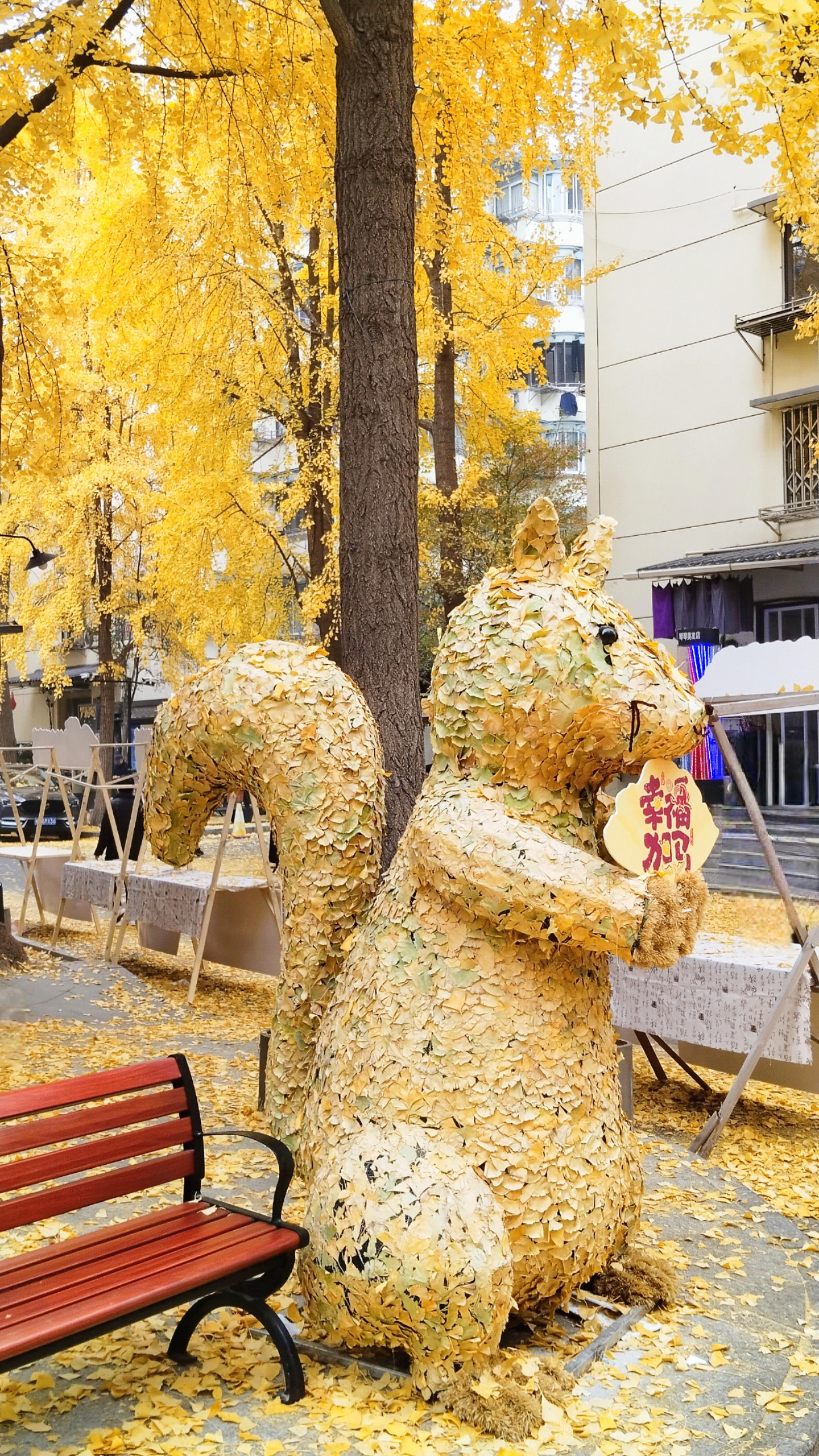 定安路社区的银杏黄了!第七届文化节打卡成功~金叶铺地,还有萌萌松鼠和马雕塑,秋日氛围感拉满,随手一拍都是大片!