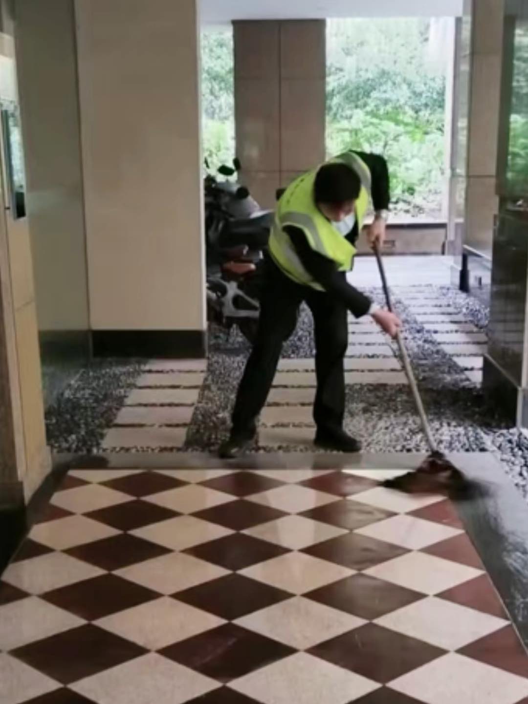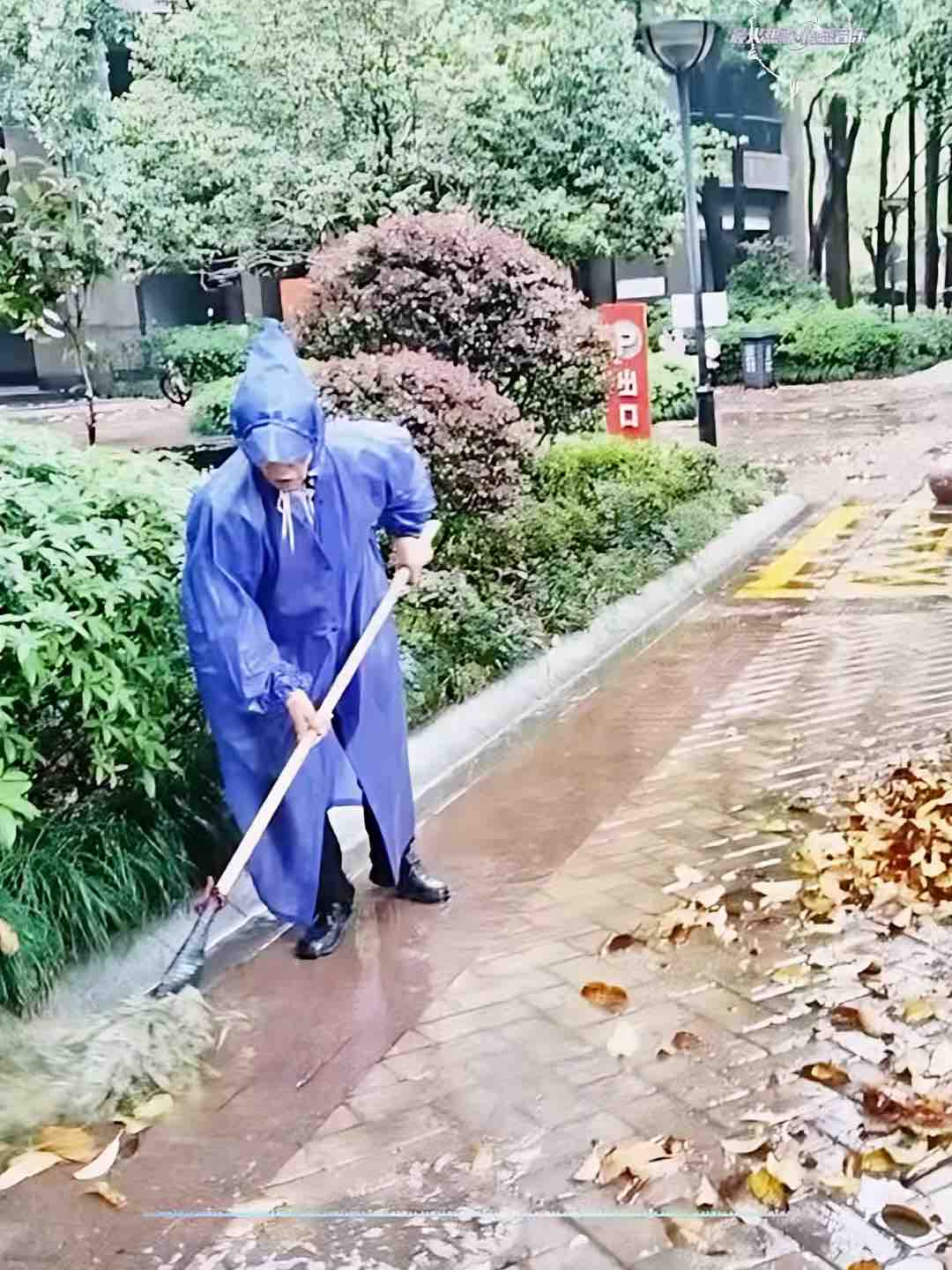 清明小长假的第一天,当多数人还沉浸在晨梦中,园区里早已有了他们风雨无阻的身影。雨水打湿了橙色的工作服,他们依旧躬身,仔细清扫每一片落叶与积水。那些被风雨打落的残枝,在沙沙的扫帚声中聚拢、消失,让假日的园区整洁如常。谢谢你们,在风雨中守护这一隅清净的劳动者。