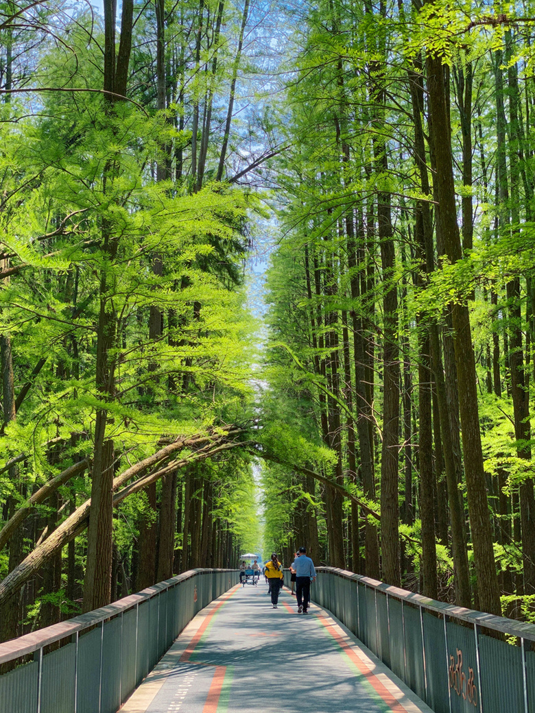 #晚潮# 青山湖一日游 我和夫君兄弟姐妹各自坐上了不同线路的地铁,朝着一个共同的方向:青山湖。我们一行最后由五号线转十六号线,在十六号地铁青山站集合。我和老公赶上地铁站时原以为地铁一定很拥挤,真坐上了地铁,比想像中的要好,居然乘上地铁还有位子坐,没有人挤人现象,甚至比上班高峰期人还要少,感觉我们这次选择是对的了。 我们下了青山湖地铁站,发现行人很少,不由使人怀疑是不是走错了方向?节假日怎么会人这么少?后来发现人是不少的,景区面积大,人流分散了。我们一行沿着人行道走了十来分钟,一排圆形围墙上面一行“青山湖环湖绿道”白色大字进入了我们的眼幕,脚下人行栈道向远处延伸,我们的双脚真正走上了青山湖的栈道。 青山湖环湖绿道于2018年年底建成,它全长43公里,据说光工程造价就有十个亿,它是由浙江农林大学园林设计院的设计师们设计出来的。青山湖是一个人工湖面积有十个西湖大,也难怪再多的人到了景区也不显得很拥挤。它可以与西湖相比美,青山湖给我的感觉是:整个湖面显得很开阔,如一面镜面飘荡在山水之间,给人一种美感,人站在栈道边如同站在镜面上行走,婉如仙境。青山湖上最值得一看的是水上森林,这些奇特的杉树如同在水中生长,这种奇观是西湖所没有的。可惜我们来的不是时候,水上森林的水不多,据说每年四月是最佳观赏期,因为这个时候雨水最多,会给人一种翡翠镶嵌在碧水之中的感觉,能给人有一种在画中行走的美妙境界。 青山湖远离市区是一处山清水秀的幽静之处,它让人的灵魂和大自然融为一体,眼前的杉树挺拔,就像位士兵守护在青山湖边,它们无怨无悔地在这里守卫着。我们沿着栈道漫步在杉树两旁,好像进入了宫殿,士兵在两旁向你致注目礼,让人心醉不已,这是个天地相容,灵魂私奔的地方,心中油然生出一句“人生如水,雁过无痕。”觉得时光在倒流,仿佛自己回到了青春时代,我穿着军装背着背包穿行在杉树中,眼前的一切让我晃如回到了军营,在杉树中穿行,眼前水天一色、浩瀚无际的青山湖展现在我的面前。在碧水蓝天深处,我极目远望隐约看见一艘小船驰过,仿佛来到了人间仙境一般。 不知不觉间,我们一行进入了单车文化主题公园,不少骑行者或成群、或单独背着行囊从我们眼前飞过,这里是骑行者的天堂,整齐曲折的道路让骑行者过了把瘾。电瓶车满载着游客从我们身边驰过,我们从上午出门后一直在行走,感觉有些累了想找个地方休息。在建造的庙宇前我们停下了脚步小憩了一下,姐夫不知从那儿找来了一支长竹竿一分为二,递给我做拐杖,有了这根竹竿果然要轻松很多,我可以借助竹竿的力量,减轻体力付出。在我们人生路上,同样也需要借助外来的力量,让自己更好的前行,如同这根拐杖,上下坡需要它帮我稳定重心,减轻体力消耗。至少这段行程不会感到很吃力。 一个供游客休息的凉亭出现在我们眼前,我们一阵惊喜,已经十二点多了,真想找个地方休息吃中饭,增加点能量,肚子早就提抗议了,它在咕咕地叫了。我们一走进凉亭发现进退二难,有一群年青人正准备在这里搞同学会,连音响都摆好了,看我们这群老年人走了进来,就主动退出凉亭,把这里让给我们。我不由感慨现在社会风气慢慢在变好了,尊老爱幼,为老人让路让座比比皆是,这是几年前想都不敢想的。社会好风气的回归也是当今社会最需要的,也让我们这群老人欣慰,又如回到60年代的社会风气。有了凉亭这个落脚点,我们摆开架势好好吃中饭是件惬意的事儿,我们各自拿出准备好的美食,我家拿出了"知味观"的素烧鹅、熏鱼、酱萝卜,大嫂拿出了热乎乎的八宝粥,大姐拿来了肉丝炒笋,小妹拿出了自己的高山小番薯,还有各自的水果零食,饱餐一顿后我们继续前行。很快我们闻到了一阵阵花香,原来我们己进入“八百里”景区,空气中醉人的花香流入我们的心田,不知不觉沉醉在其中,我不由放慢了脚步。突然一幢老式砖瓦房进入了我们的视野,这幢房子已经久远,城里现在是看不到这种房子了,觉得好奇我们停了下来,围着房子转了好几圈,拍摄了好几张照片作为留念,这种砖瓦房我年幼时住过,它勾起了我童年的记忆,随着社会的发展我们住上了楼房。砖瓦房虽然离我们远去,但有种情结仍留在我们的记忆里。走不多远“棲霞楼”呈现在我们面前,据说这个“棲霞楼”在南宋时期是个很繁华的地方,距现在已有八百年的历史,这幢城墙楼记录着八百年来的沧桑,虽然外墙破旧不堪,但它仍顽强挺立在这里,它告诉人们它曾为华夏文明作出了很多贡献,只要是华夏的儿女不要忘记前辈们为今天的繁荣所做出的努力。 青山湖一日游给我们留下了美好的印象,等待春暖花开我们还会再来,弥补一下这次的遗憾,领略下水上森林奇特的景观,青山湖等着我们再来看你! 作者:胡华军著有散文集《心中的蓓蕾》、《追忆》。杭州市西湖区首届十佳优秀作者,现为中国微型小说学会会员、中国散文学会会员、浙江省作家协会会员、浙江省散文学会会员、杭州市作家协会会员、杭州市文艺评论家协会会员、杭州市苏东坡研究会会员、杭州市文学学会会员、杭州市西湖区作家协会会员。