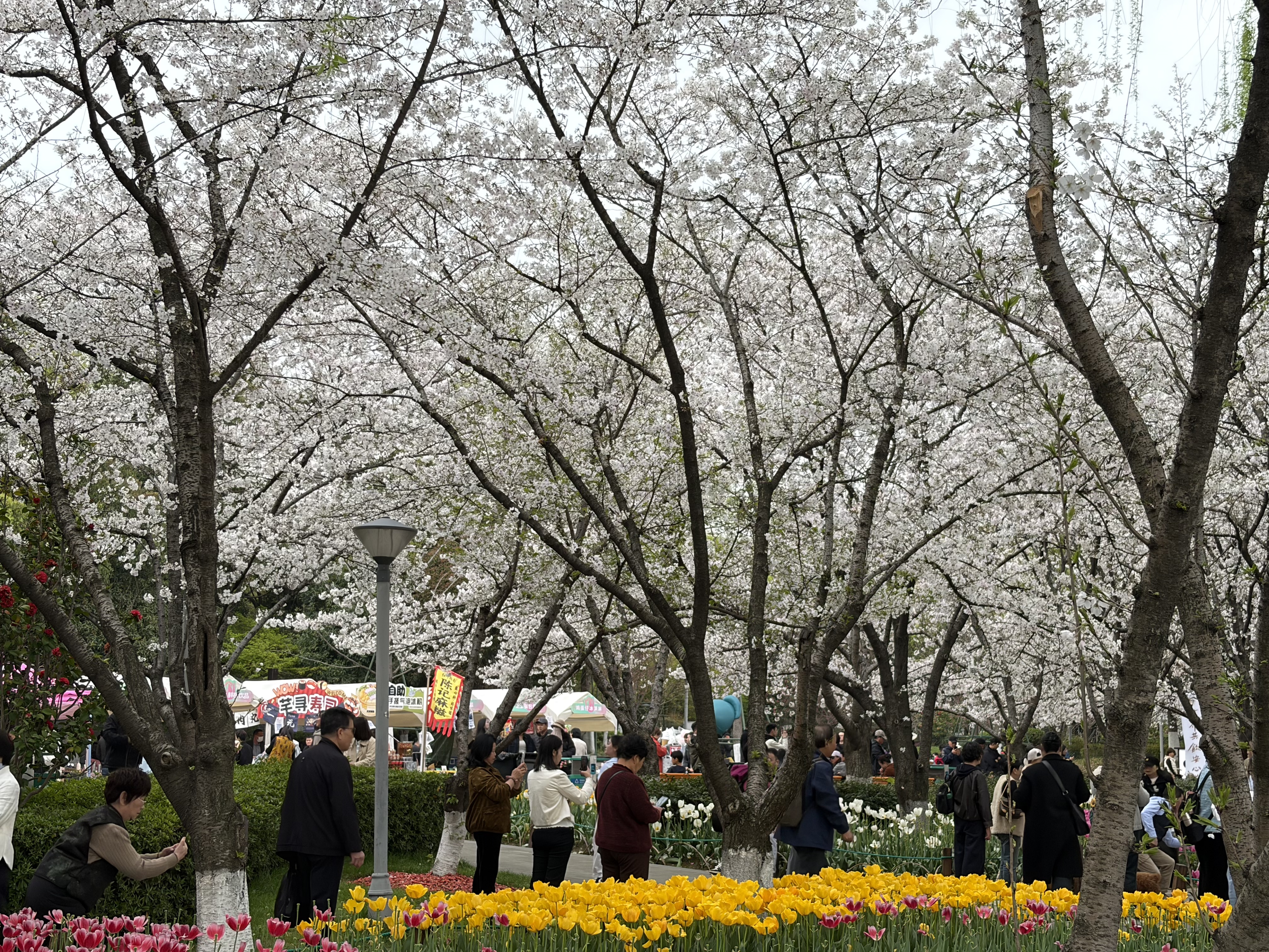 如果说太子湾以郁金香为主打、间以规整有序次弟开放、得天时地利人和,成为西湖春天的品牌。而绍兴的瓜渚湖则以规模化的天时地利人和将数与量做到了极致、樱花与郁金香互为主角、争相竞艳,游客的人众、始终在樱花的浓荫下、流淌在郁金香的花海里… 观赏归来,将两地之春粗浅的比较一下,无意贬低只谈感受。哈哈