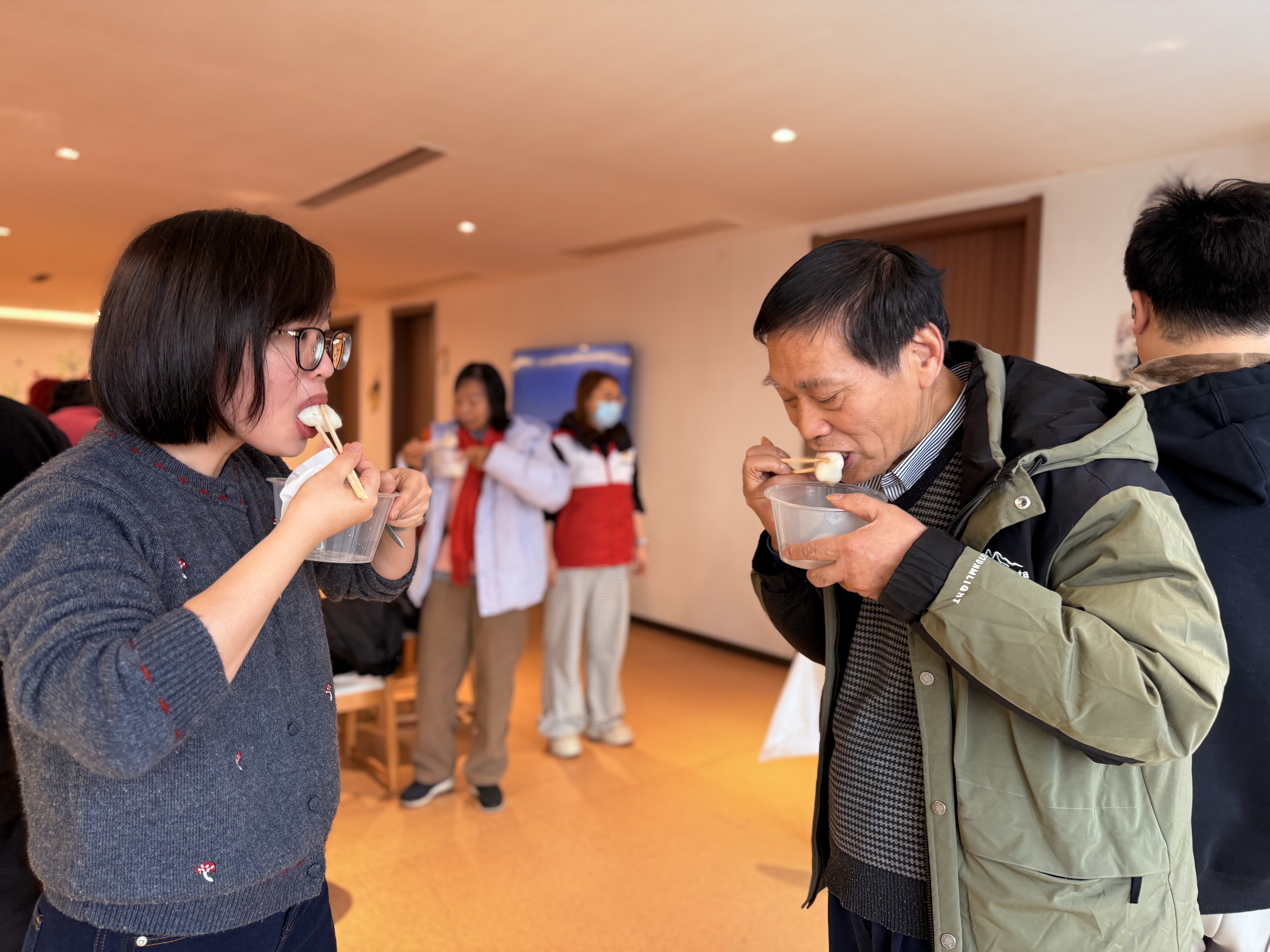 除夕夜青年志愿者送暖茶 致敬城市坚守者