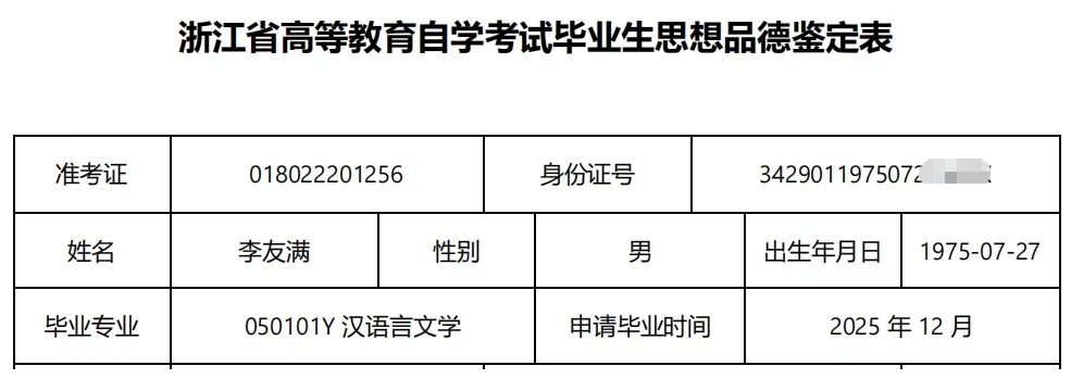 十二月份申请自考本科毕业,现在学信网可查了。 这是一份迟到了三十年的学历,如果三十年前有这样的学历,我的人生轨迹就不会在杭州打工三十年了。但人生没有如果。 22年夏天开始报名,用看书做题考试疗愈人生的三年至暗时刻,如今毕业了,伤也疗得差不多,似乎一切刚刚好。 这个学历已然不能用来找工作了,除了申请杭州公租房已经没有什么用处了,但是我的心灵慰藉!是我至暗时刻疗伤的良药!