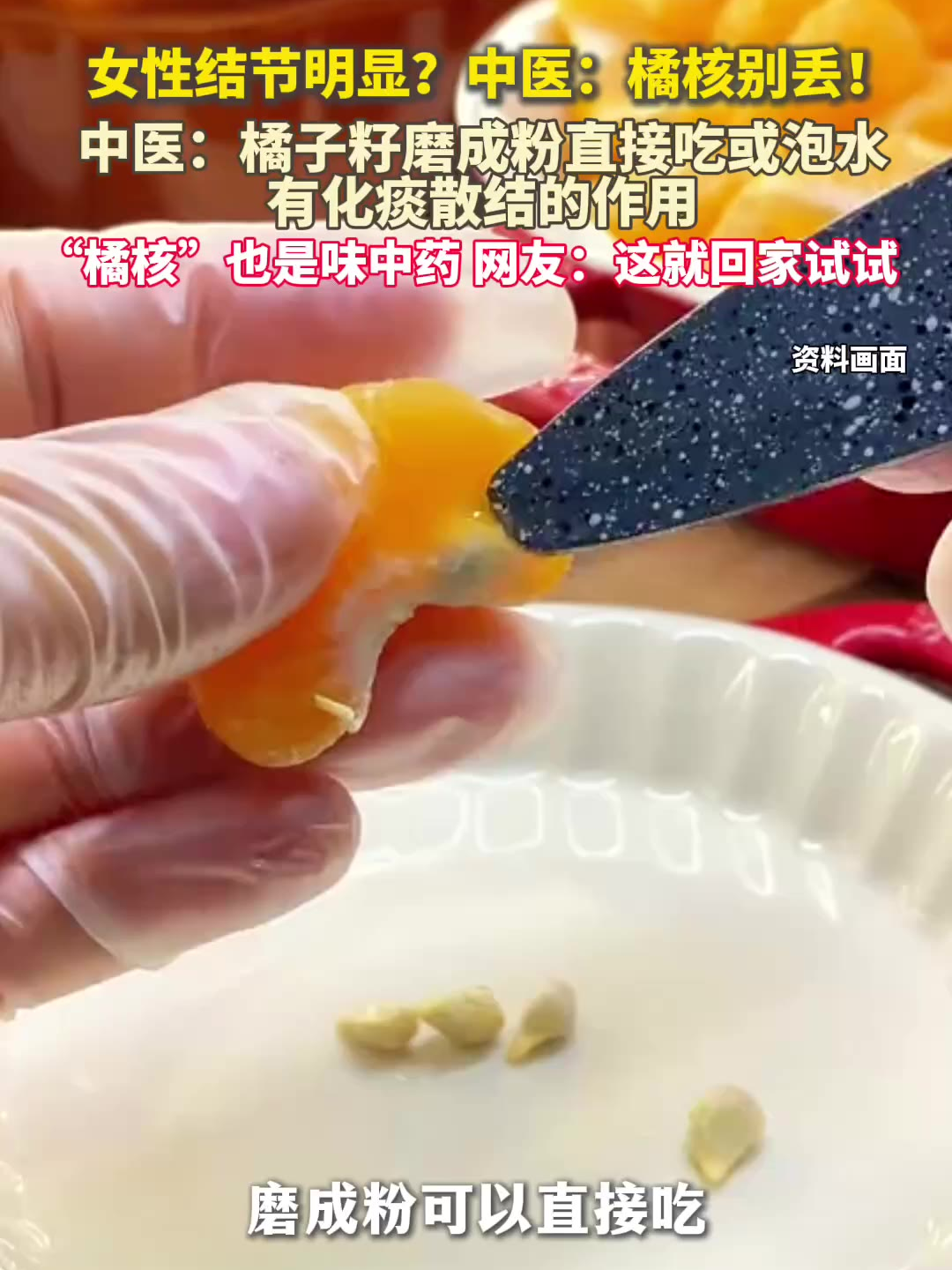 吃了橘子,别把核丢了!女性长结节中医推荐吃橘核磨粉,可化痰散结