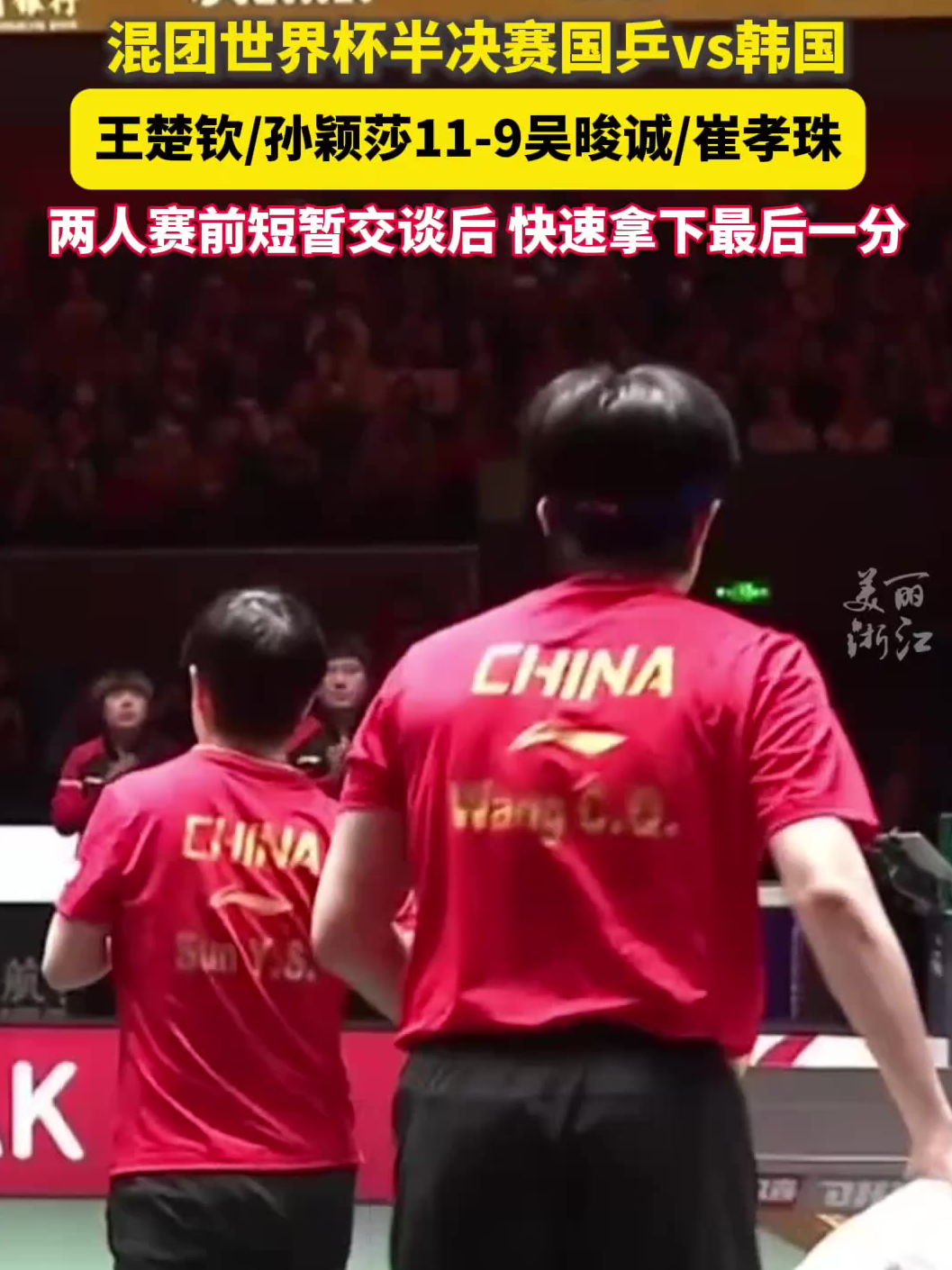 默契!混团世界杯半决赛国乒vs韩国第一盘,王楚钦孙颖莎11比9吴晙诚崔孝珠