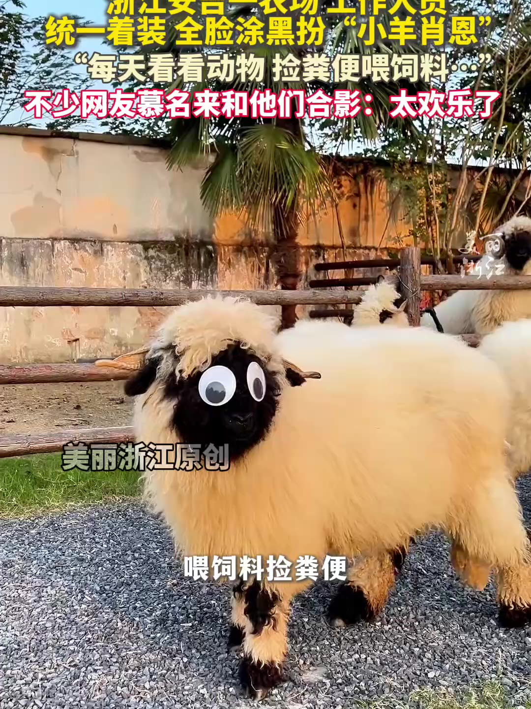抽象!浙江湖州一农场工作人员扮成小羊肖恩,不少网友慕名来打卡:精神状态太超前了!(来源@青苔打工羊)