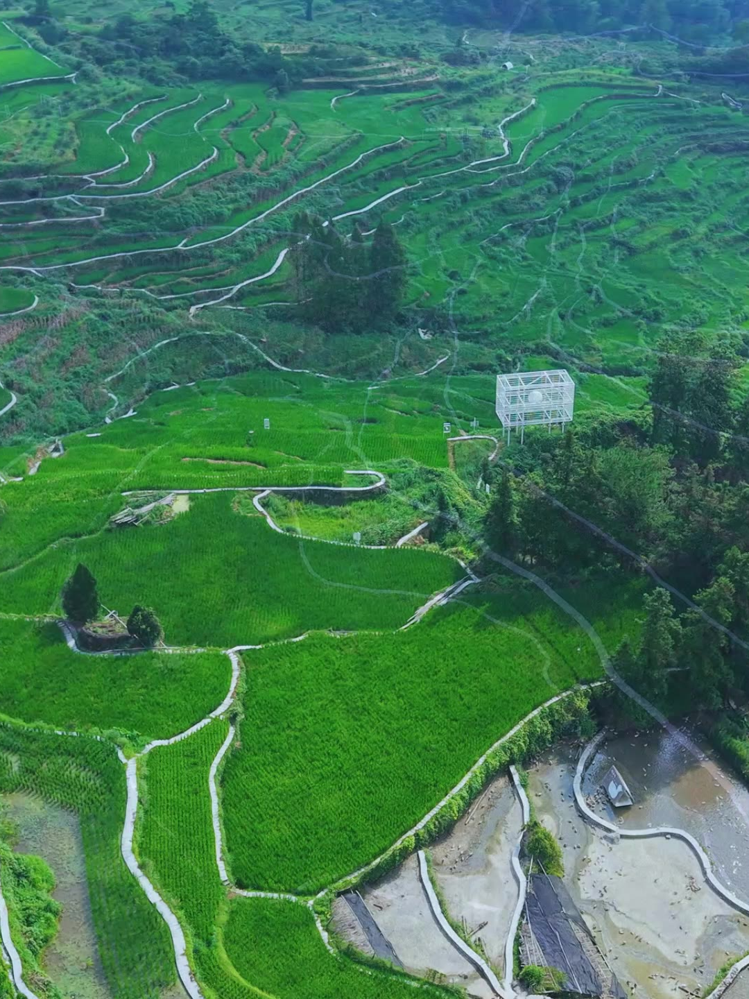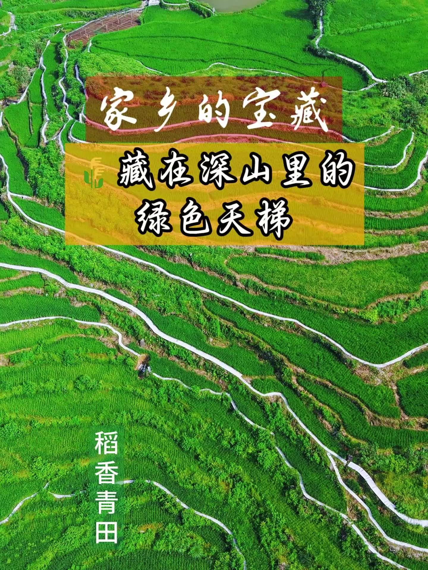 🌾藏在青田深山里的绿色天梯!层层叠叠的田埂像被大自然揉皱的绿绸带,从山脚盘到云里去。清晨雾没散的时候最绝,稻穗尖挂着露珠,远处的牛铃声顺着风滚下来,爷爷戴着草帽在田里薅草,影子被朝阳拉得老长… 这画面直接把《稻香》的 BGM 刻进 DNA 里了!