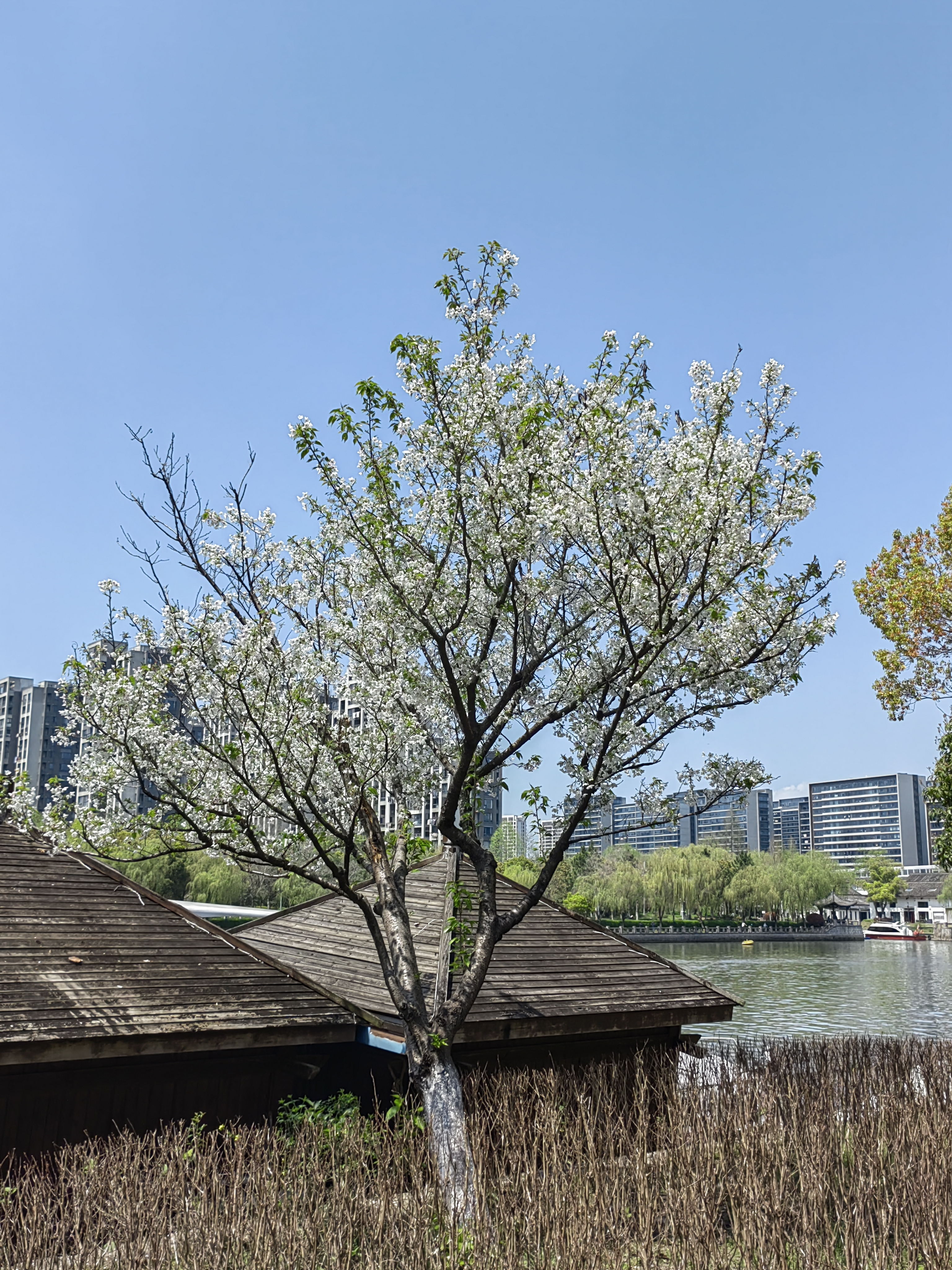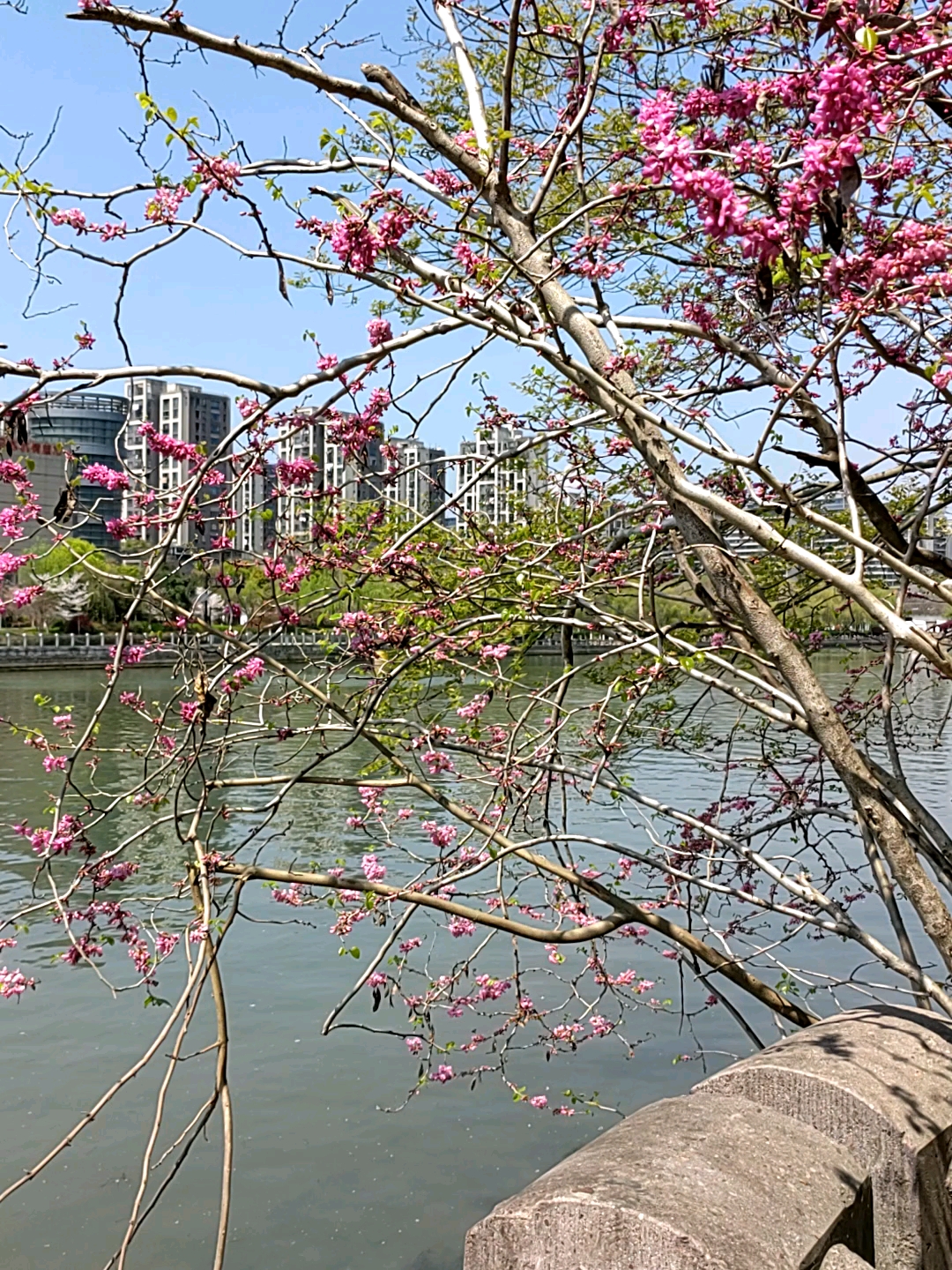 樱花粉+湖光蓝+天幕白,随手一拍就是春日限定壁纸~