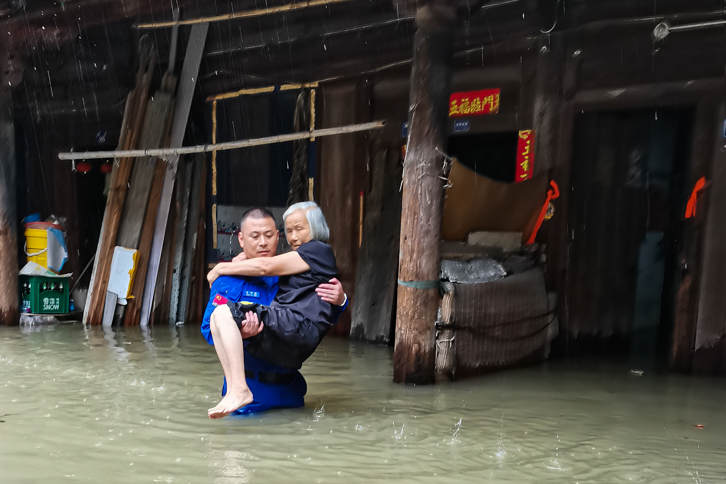 “烟花台风”最美公主抱。学雷锋精神 传志愿情怀