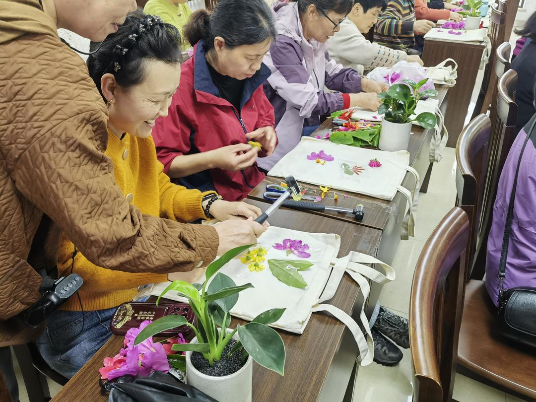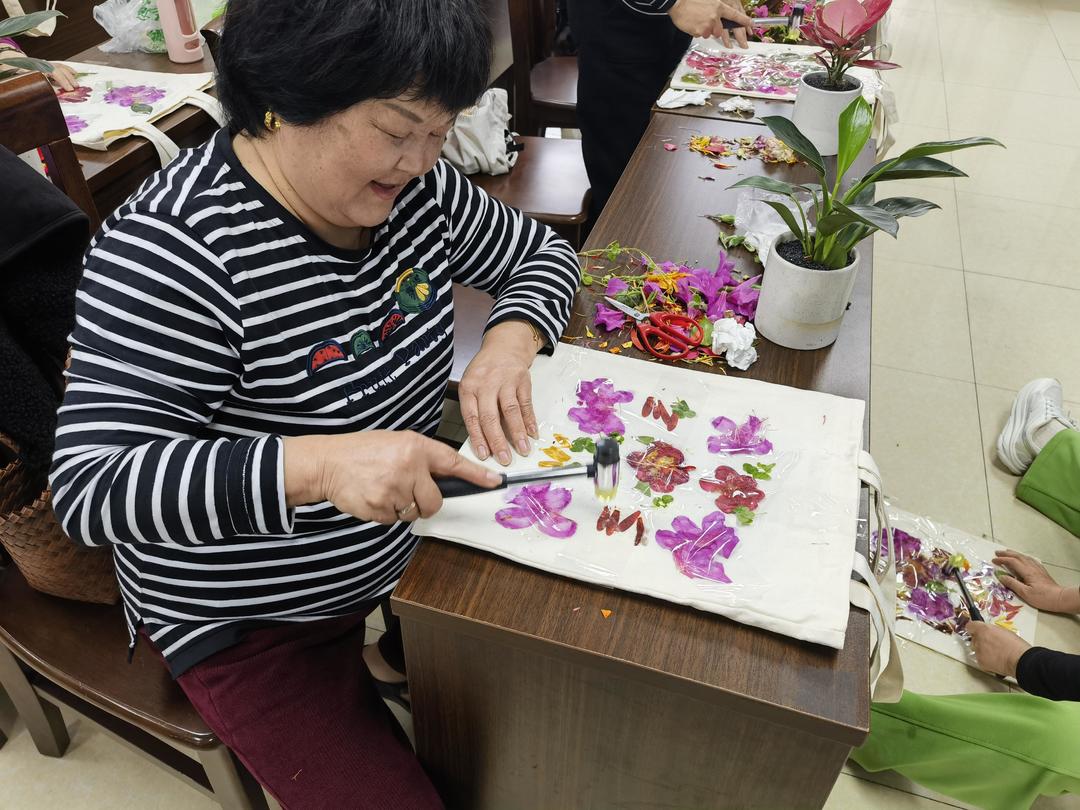 “以后去超市就拎这个袋子,又好看又环保!”一位居民举起拓印好的布袋,脸上满是欢喜地说道。4月22日上午,芙蓉社区新时代文明实践站举办植物拓印环保袋制作活动,以自然为墨、以锤为笔,让居民亲手留住春日色彩,将春天“袋”回家。