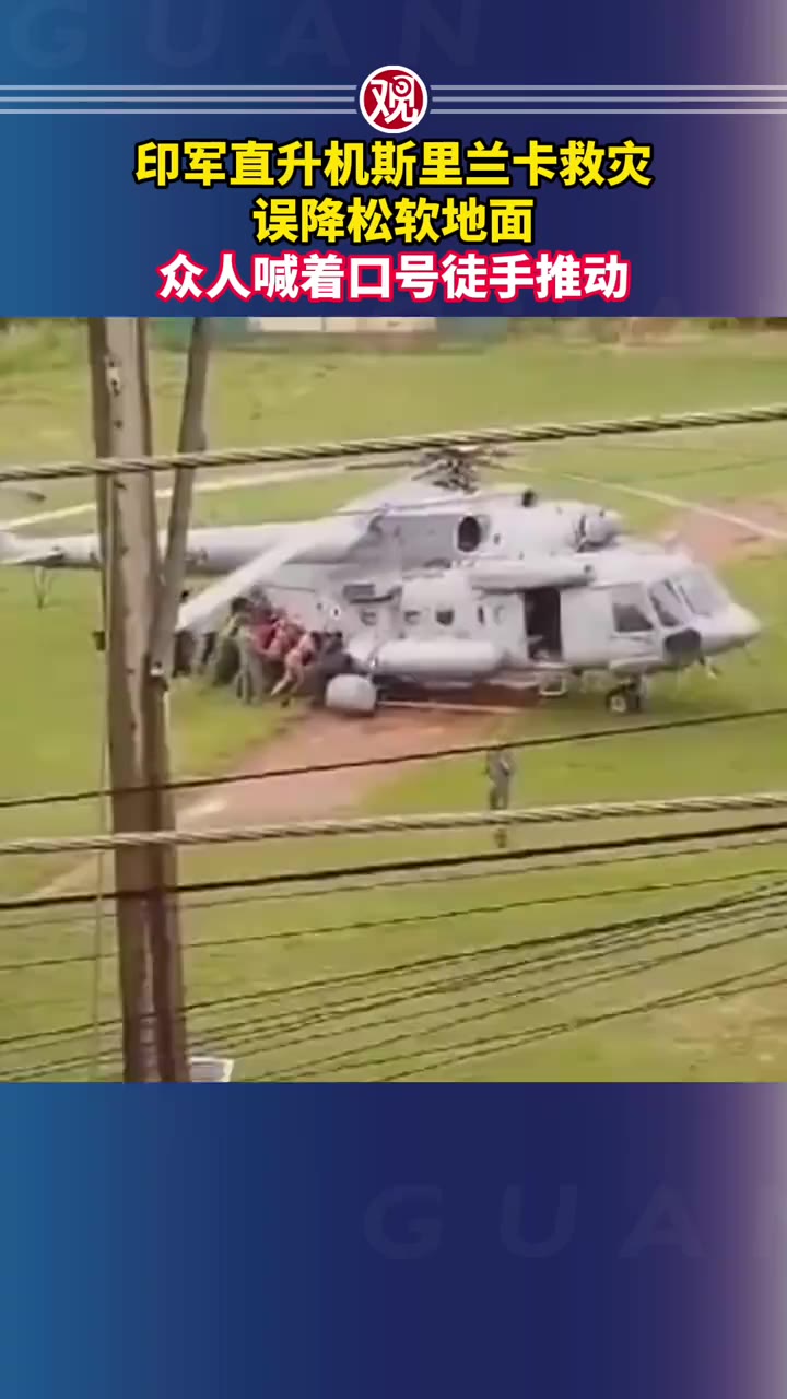 印军直升机斯里兰卡救灾,误降松软地面,众人喊着口号徒手推动