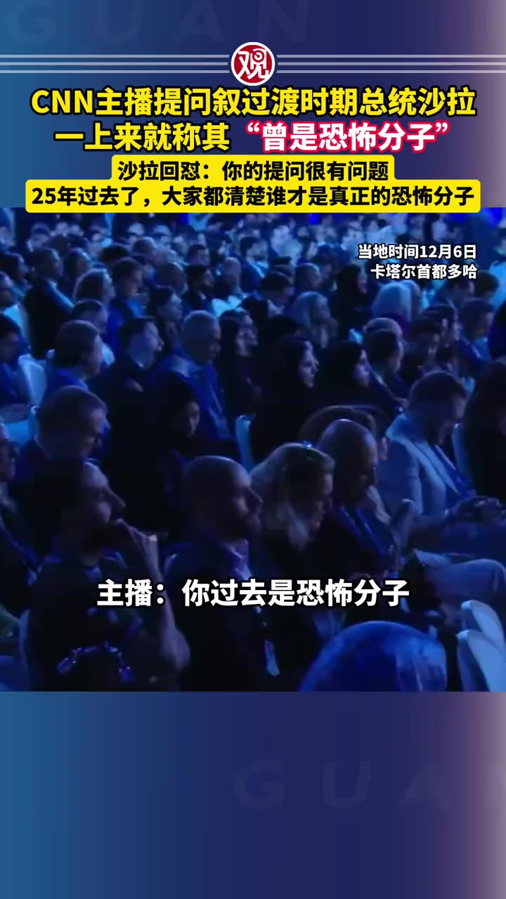 CNN主播提问叙过渡时期总统沙拉,一上来就称其“曾是恐怖分子”,沙拉回怼:你的提问很有问题,25年过去了,大家都清楚谁才是真正的恐怖分子