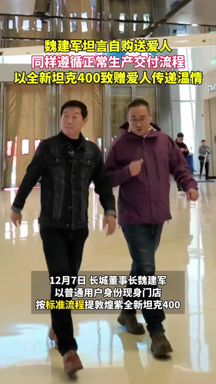 魏建军坦言自购送爱人,同样遵循正常生产交付流程,以全新坦克400致赠爱人传递温情。