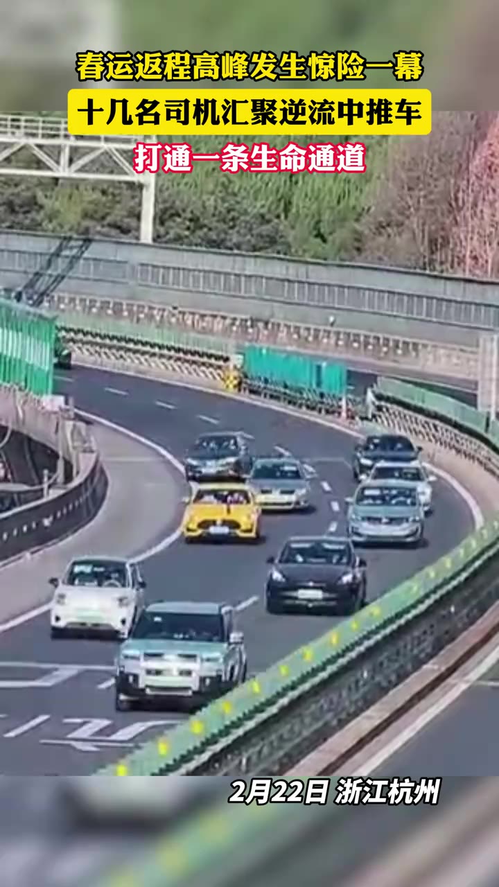 春运返程高峰发生惊险一幕,十几名司机汇聚逆流中推车,打通一条生命通道