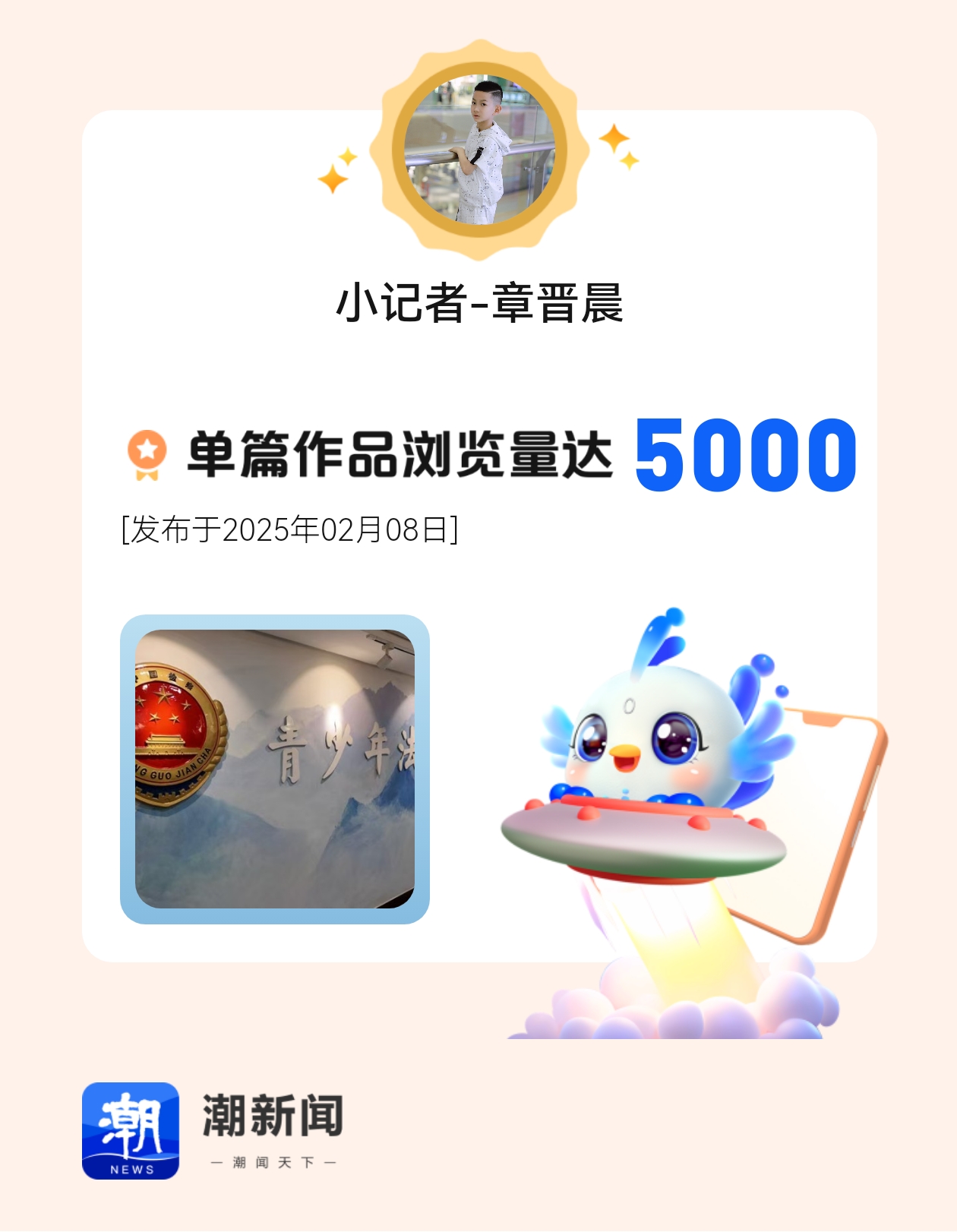 我在潮新闻发表的单篇作品浏览量达到5000!