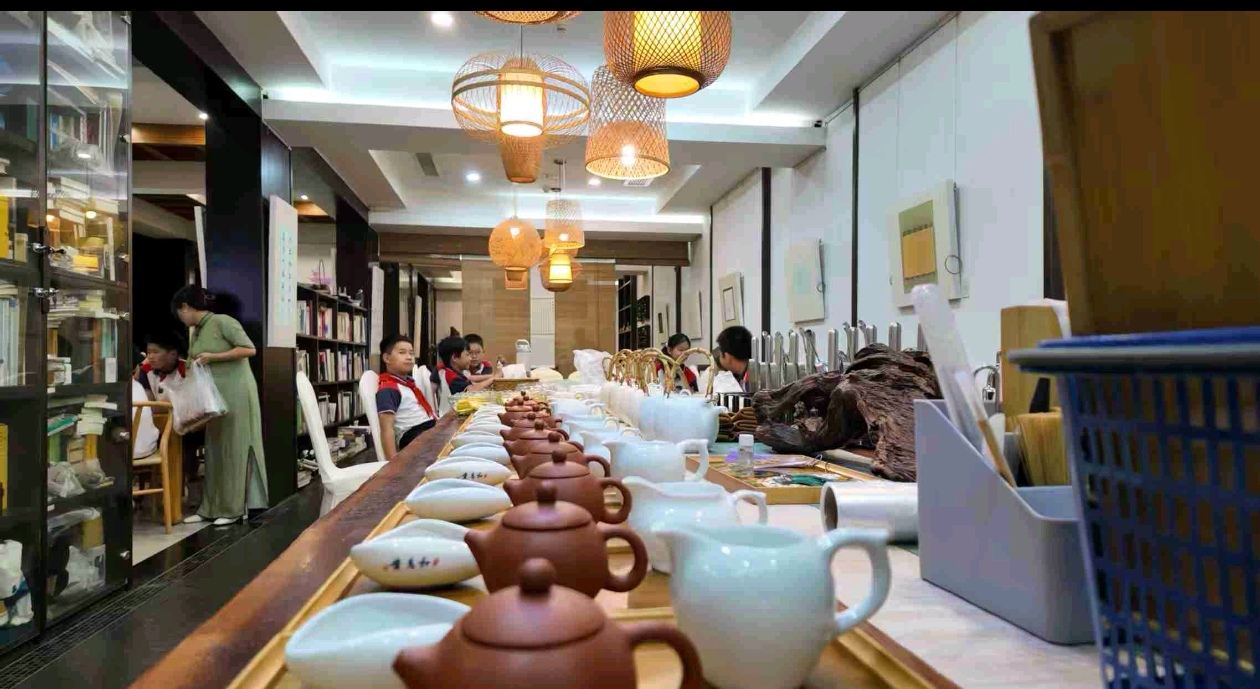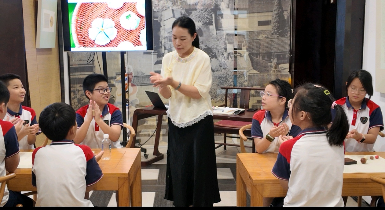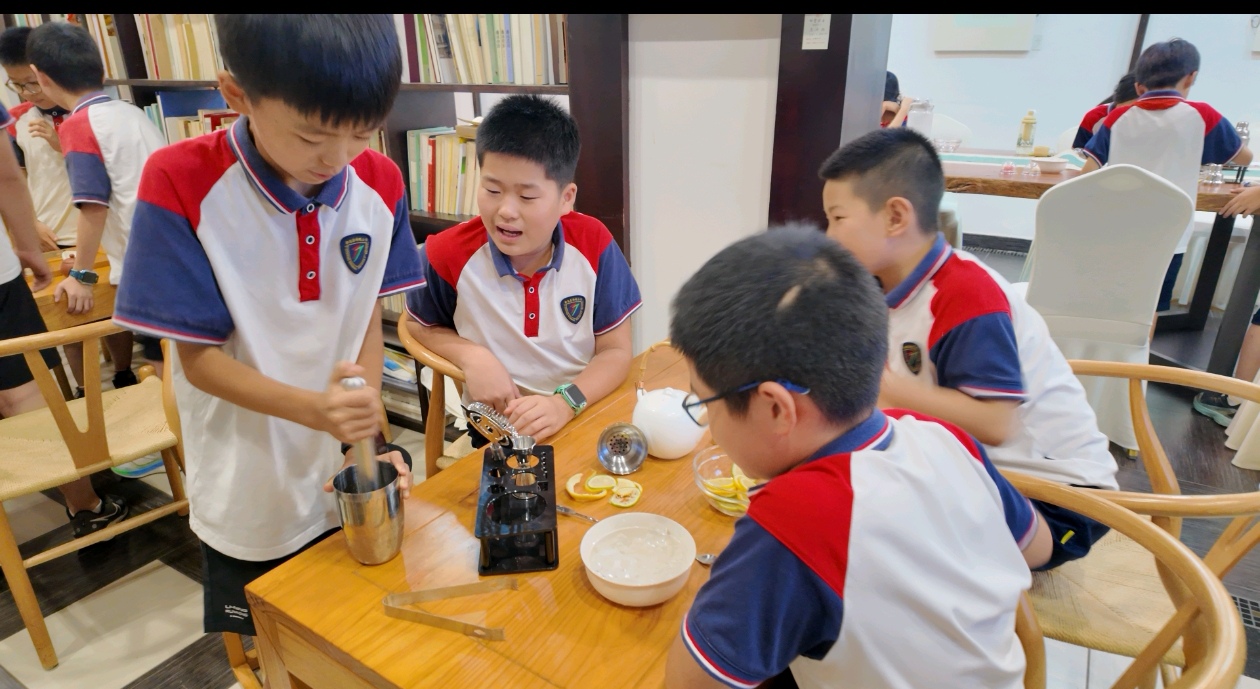 #潮闻小记者#绍兴新昌县南明小学章晋晨 “美育润童心 非遗伴童年 ” 南明小学四(3)班暑期实践非遗茶果活动 8月18号下午,我们南明小学四(3)班的同学可开心啦,因为我们要去唐诗之路研学营地,体验超有意思的非遗茶果子制作!早就听说茶果子是传统文化里的宝贝,不仅好吃,还藏着好多文化故事,一想到能亲手做,我心里就美滋滋的。 到了营地,老师先给我们讲了茶果子的做法,然后我们就化身小小“点心匠人”,开始动手啦。你看,我们拿着软糯的馅料和面皮,小心翼翼地揉啊揉,先搓成圆滚滚的小球,再轻轻压扁,把馅料包进去。最神奇的是,不用那些花里胡哨的现代模具,就靠一双手,再加上木棒、木蛋这些简单的工具,就能做出各种好看的造型。我旁边的同学正皱着眉头,一点点捏花瓣的棱角,那认真的样子,好像在完成什么大工程;还有人眼睛亮晶晶的,用工具压出了小兔子的耳朵,别提多可爱了!还有人突发奇想,做了个“肥牛卷”,大家看了都笑说太像了,简直能以假乱真。虽然我们的手法还有点生涩,但每一个动作都藏着我们对这门老手艺的喜欢呀。 做好了茶果子,当然得配茶才完美!老师说要教我们做夏季冷饮——冰镇柠檬红茶,用的都是家里常见的柠檬、红茶、冰块和蜂蜜,健康又好喝。我赶紧拿起雪克杯,把柠檬和冰块放进去,然后拿起小锤子“暴打”柠檬,虽然动作笨手笨脚的,但听着冰块碰撞的声音,还有大家的笑声,整个教室都热热闹闹的。接着倒入泡好的红茶,加上适量的糖,一杯带着我们手印的柠檬茶就做好啦,喝一口,哇,太清爽了! 这次体验真的好棒,我们不仅学会了做茶果子和柠檬茶,更感受到了传统文化的魅力。原来用心去做一件事,能收获这么多快乐呀!