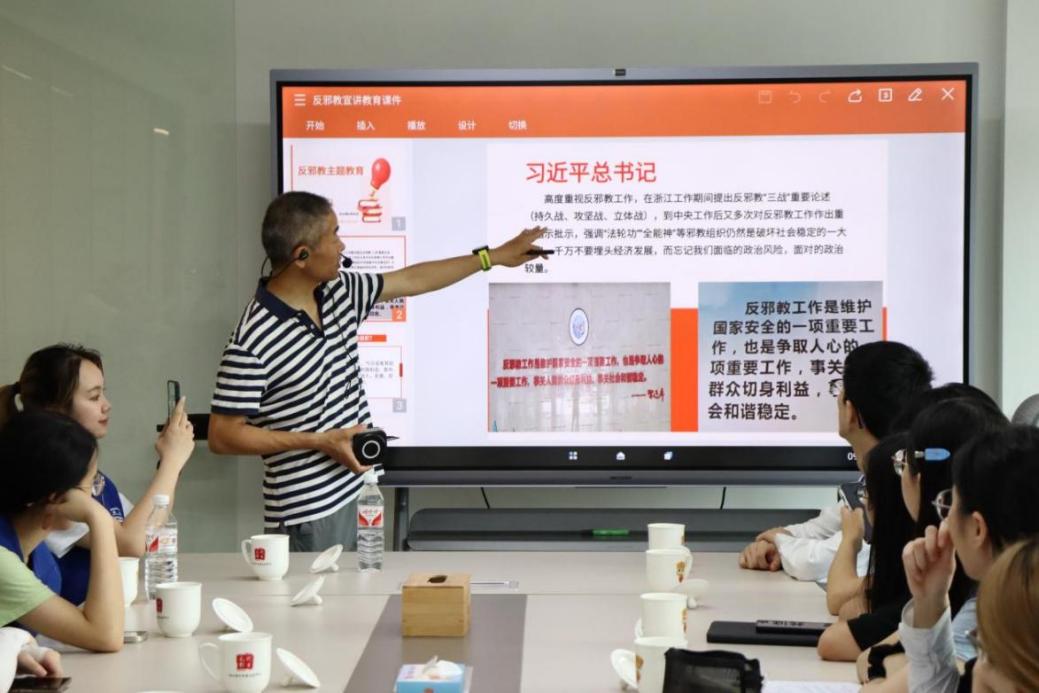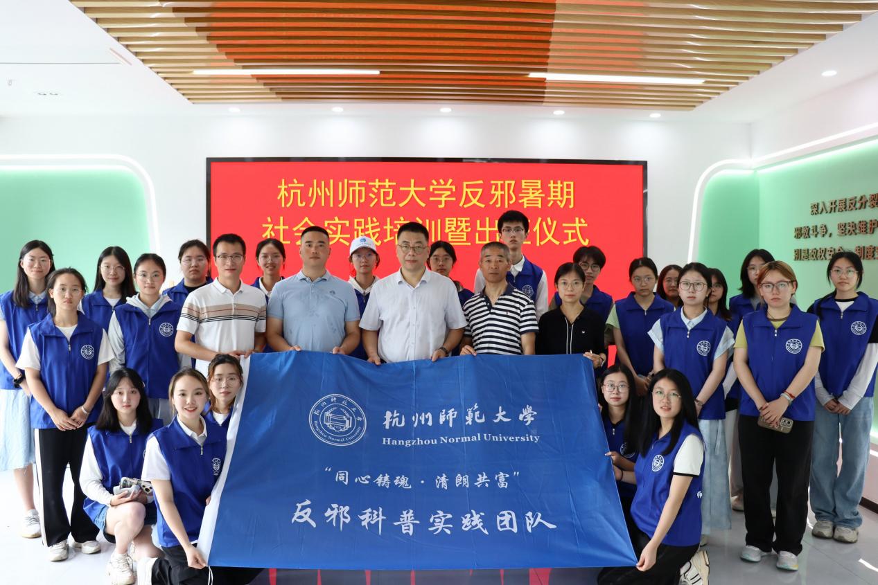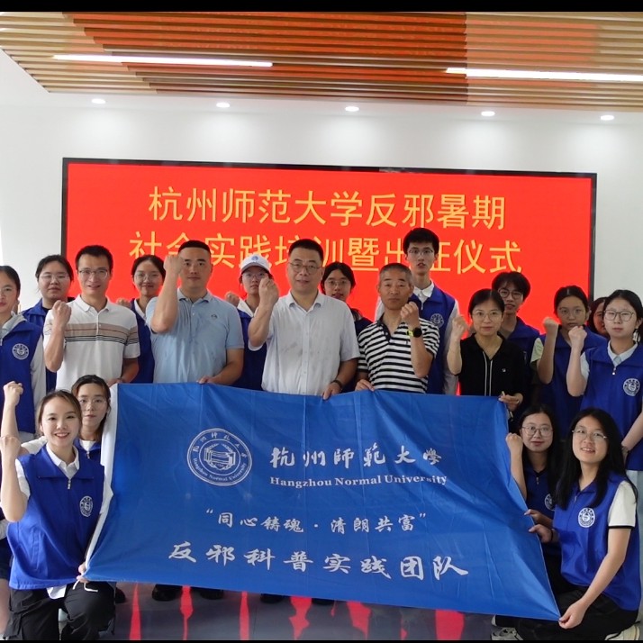 钱塘江畔清风起,反邪铸魂共富路—— 从钱塘区关爱之家启航 文/杭州师范大学 数学学院 王秋涵 杭州师范大学下沙校区“同心铸魂·清朗共富”反邪实践团队来到钱塘区关爱之家。钱塘区委政法委副书记施建辉等代表,指导老师及学生实践团队全体成员共同参加,为这场扎根基层的反邪科普实践按下“启动键”。 施建辉副书记向实践团队授旗,湛蓝的队旗在会场飘扬,象征着反邪科普的使命正式传递到青年学子手中,并在讲话中强调‘’我们要深刻认识到反邪教是维护国家政治安全的必然要求,是守护人民群众精神家园的责任担当,更是青年学子践行社会主义核心价值观的生动课堂。’’指导老师沈杰副部长对实践活动提出了做好准备工作、保障安全顺利,加强业务学习、深入宣教调研,思考总结经验、巩固实践成果的建议和希望。随后大家通过指纹打卡“反邪智慧树”,艺术化方式定格本次出征时刻。 紧接着,倪道峰主任化身反邪知识导师,为团队上好“实践第一课”。他通过真实案例、数据图表,深入浅出地讲解邪教的本质、特征、危害以及防范技巧,分享了多年一线工作经验,带领团队成员参观了“关爱之家” 和“省反邪文传中心”展厅,为实践团后续开展工作提供宝贵指引。带队教师张洁结合实践要求,鼓励队员们以专业态度投身基层宣传,将理论知识转化为服务社会的实际行动。实践团负责人黄今典同学明确任务目标,对队伍进行精细化分工,确保各组职责清晰、协同高效。队员们专注聆听、细致记录,热烈讨论中洋溢着对实践活动的期待与干劲。 团队将深入社区、村落,通过宣教、调研、参观、访谈、微课等多元化形式,面向多维度开展“童心+反邪、文化+反邪、农村+反邪,宗教+反邪”等实践活动,让科学精神扎根基层,用青春力量筑牢防范邪教的 “铜墙铁壁”,为构建平安钱塘、和谐社会贡献师大青年的智慧与力量。