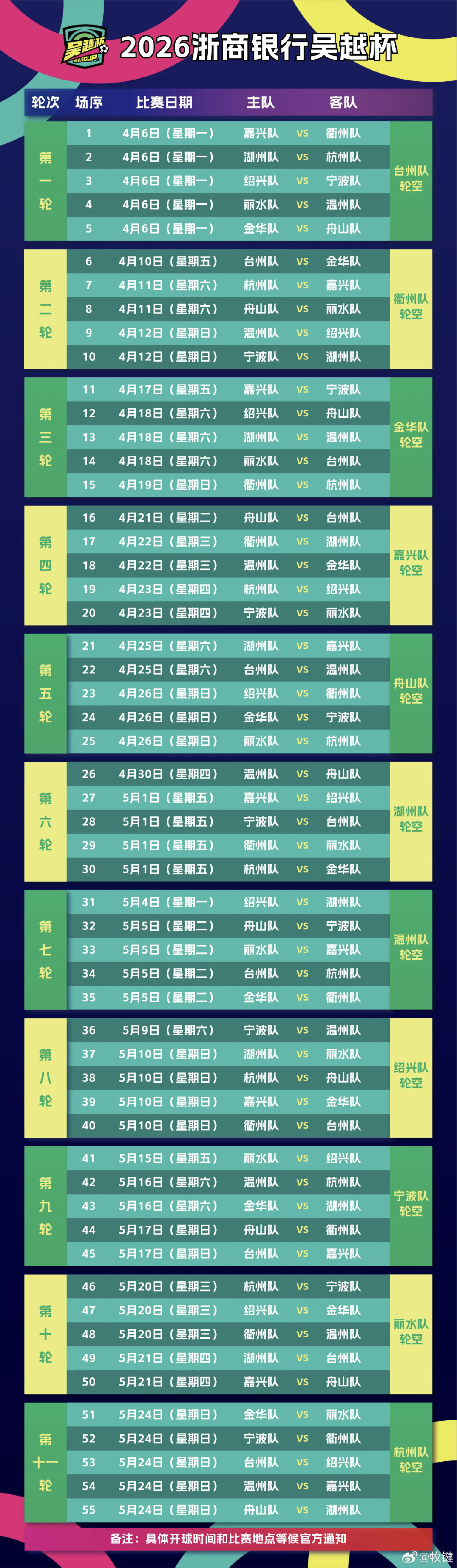 #吴越杯快讯##吴越杯里话太平#2026年浙江省城市足球联赛“吴越杯”全赛程公布!