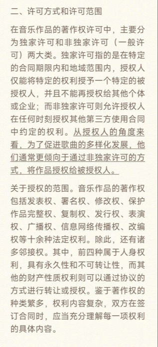 娱乐法|音乐人签著作权合同的法律指南(一) 🎵音乐人每天都在创作,其中最让人头疼的可能就是著作权的问题了。工作过程中,最常见的就是著作权授权许可合同,可能你是授权者,也可能是被授权者。那么,如何确保自己的权益不受侵犯呢? 🌟另外,作为音乐人,我们不仅要保护自己的权益,也要尊重他人的权益。在授权许可过程中,要确保对方遵守合同条款,不得擅自使用我们的作品。如果遇到任何问题,要及时沟通和处理,避免造成不必要的损失和影响。 希望笔记这些小技巧能够帮助大家更好地处理著作权授权许可合同,保护自己的权益不受侵犯。💪🎵