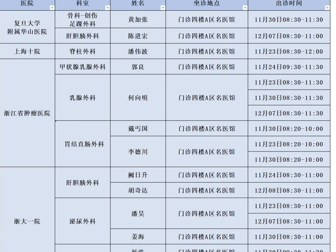 【名医来了】苍南县人民医院11月23日-12月08日上级医院专家来院坐诊安排