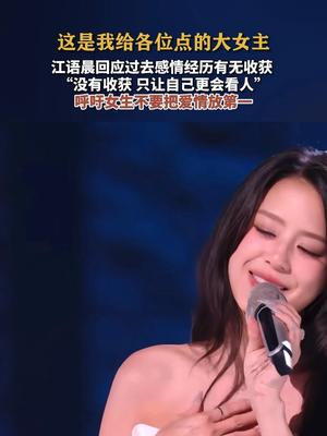 【这是我给各位点的大女主,江语晨回应过去感情经历有无收获“没有收获,只让自己更会看人”呼吁女生不要把爱情放第一】近日,《乘风2026》上线。台湾歌手江语晨大方回应媒体有关感情生活的提问,坦言在过去的感情中自己没有收获,只是更会看人了。同时呼吁女生不要把爱情放第一,要把自己和让自己开心放第一。