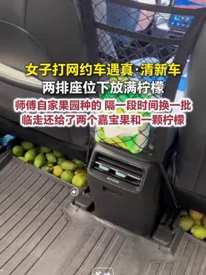 女子打网约车遇真·清新车,两排座位下放满柠檬:师傅自家果园种的,隔一段时间换一批,临走还给了两个嘉宝果和一颗柠檬