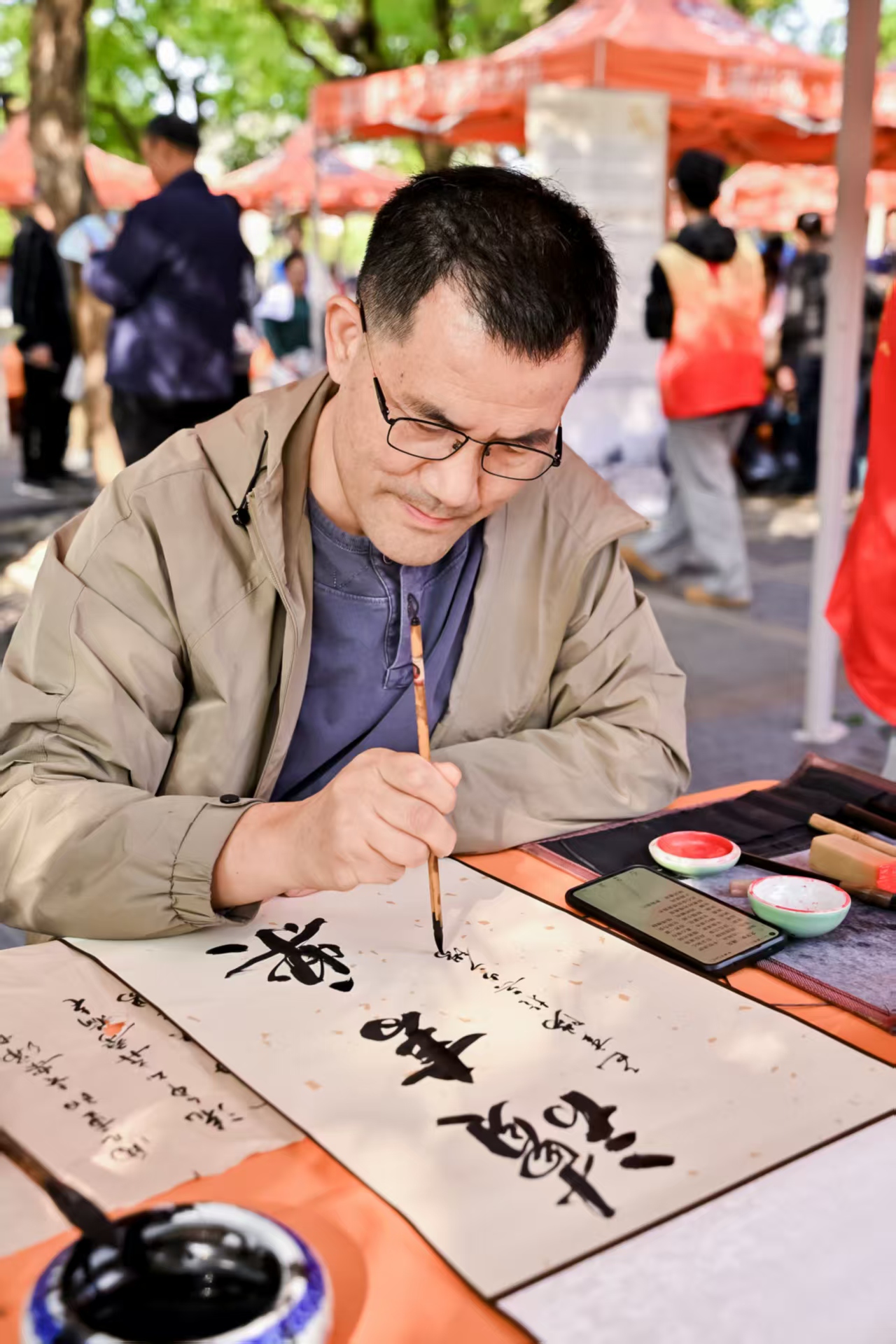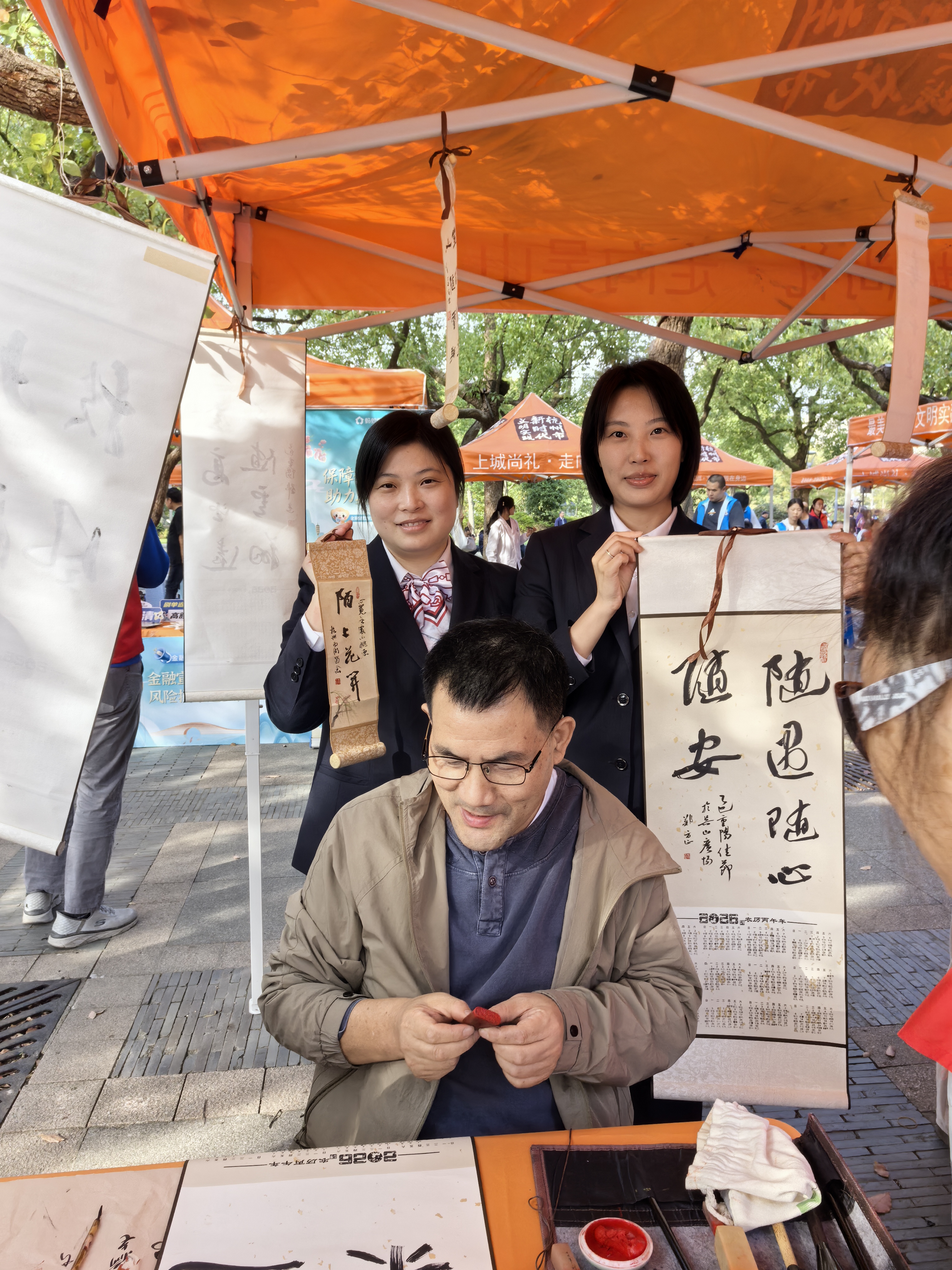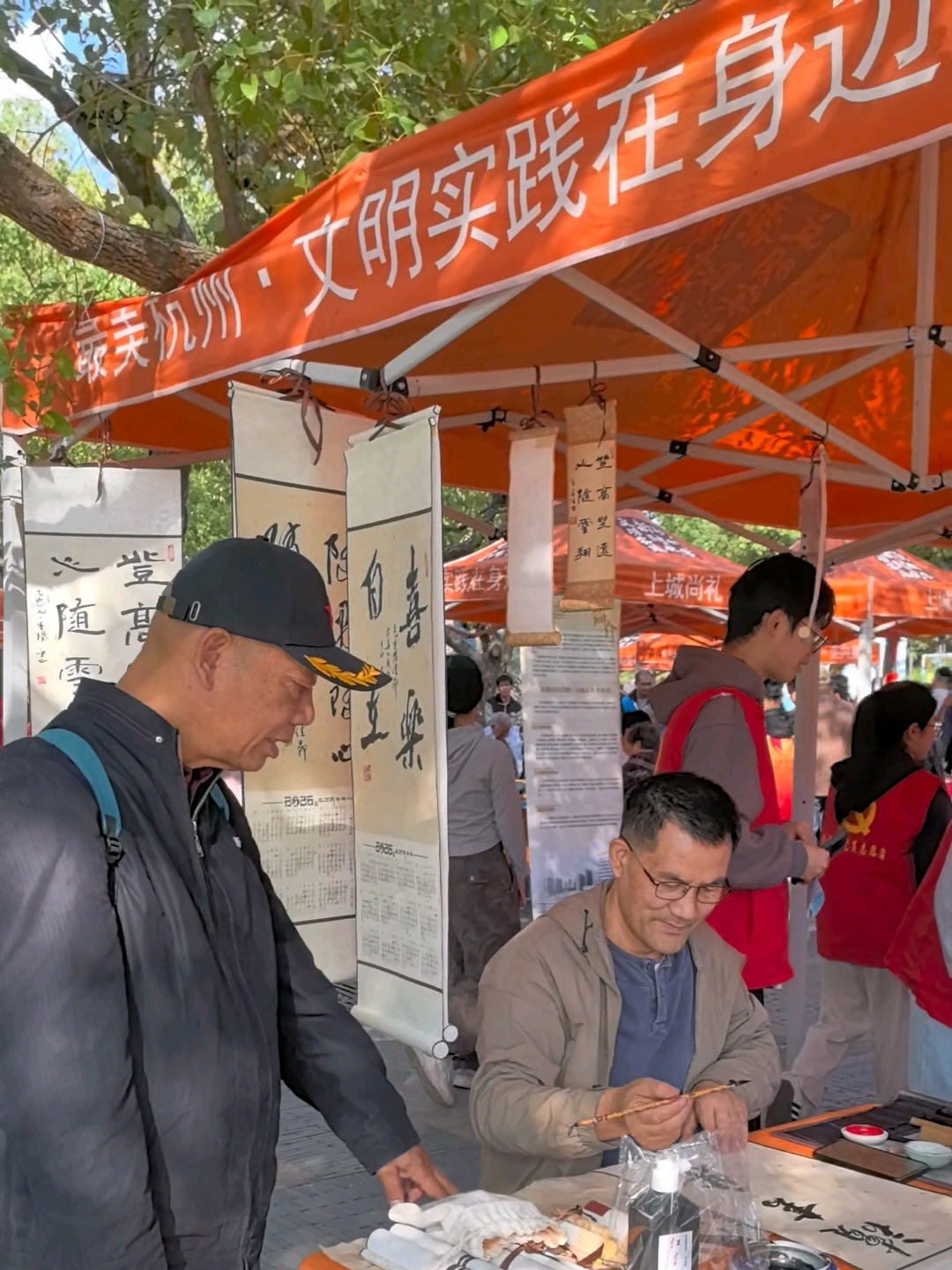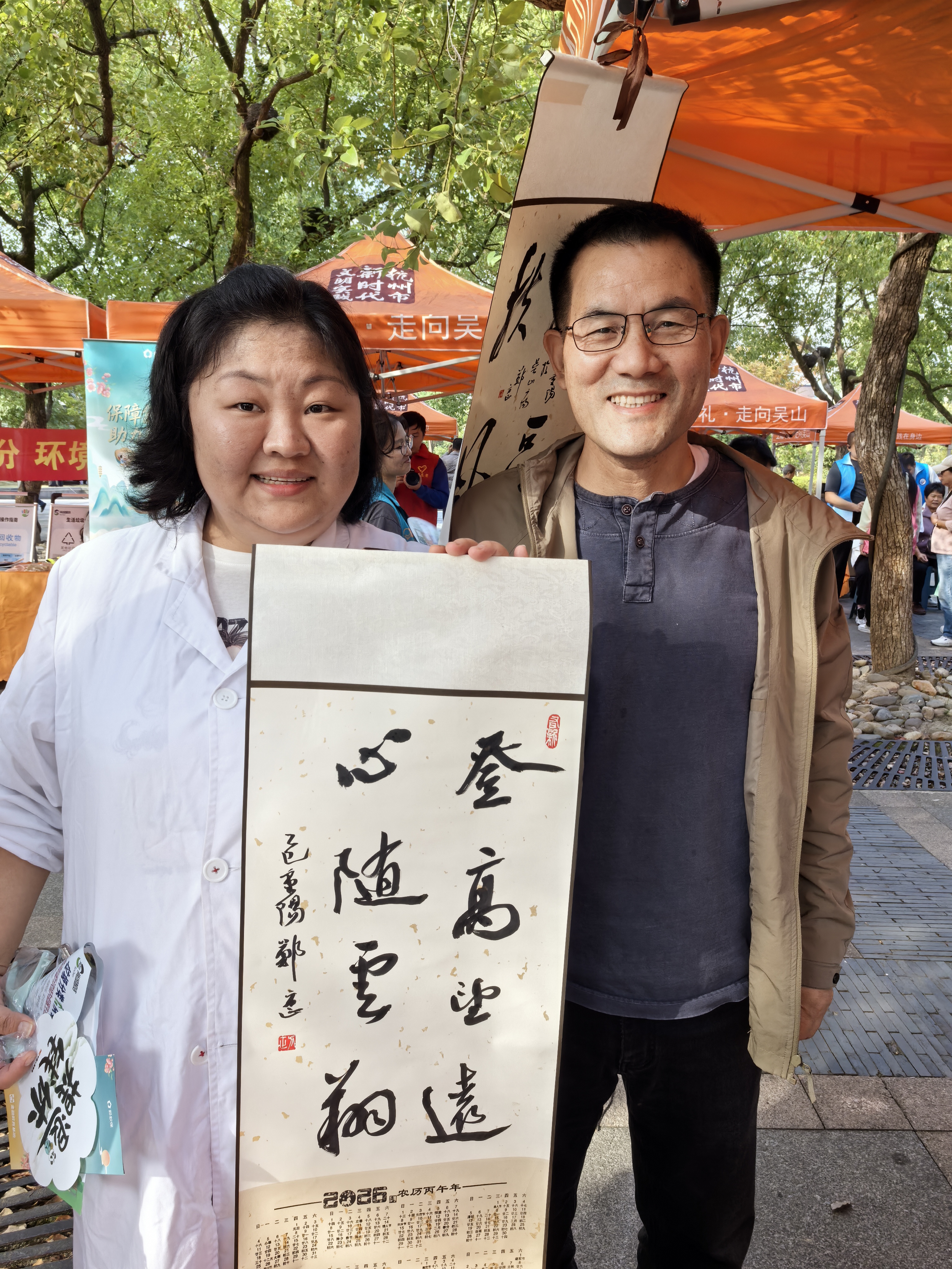 今又重阳,清波街道在吴山广场举办了一场规模颇大的公益敬老活动。求是(闻莺)书画社郑方正老师埋头写挂历,满足前来索取挂历的居民们排队索字。看他们手持挂历如获至宝的幸福表情就知道这样的活动多有意义了!