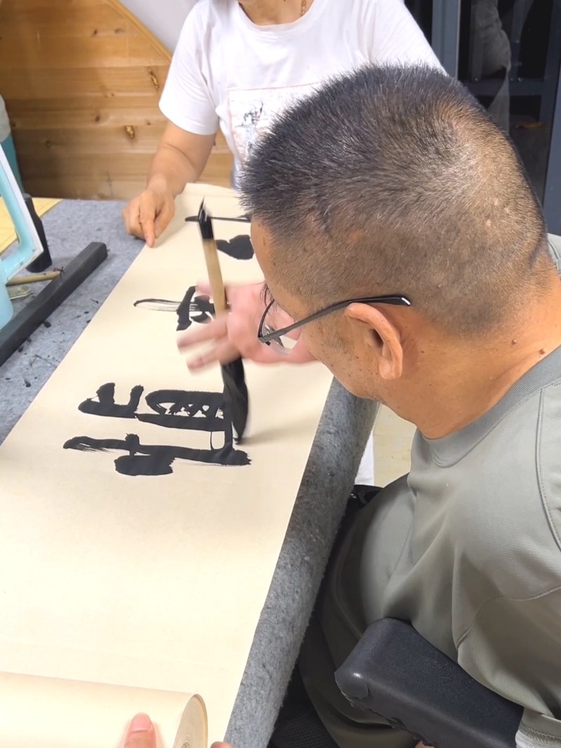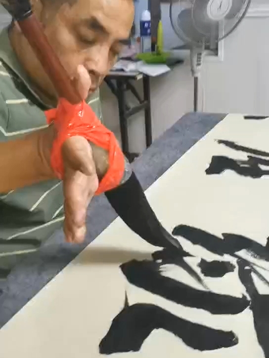 把自己绑起来写榜书