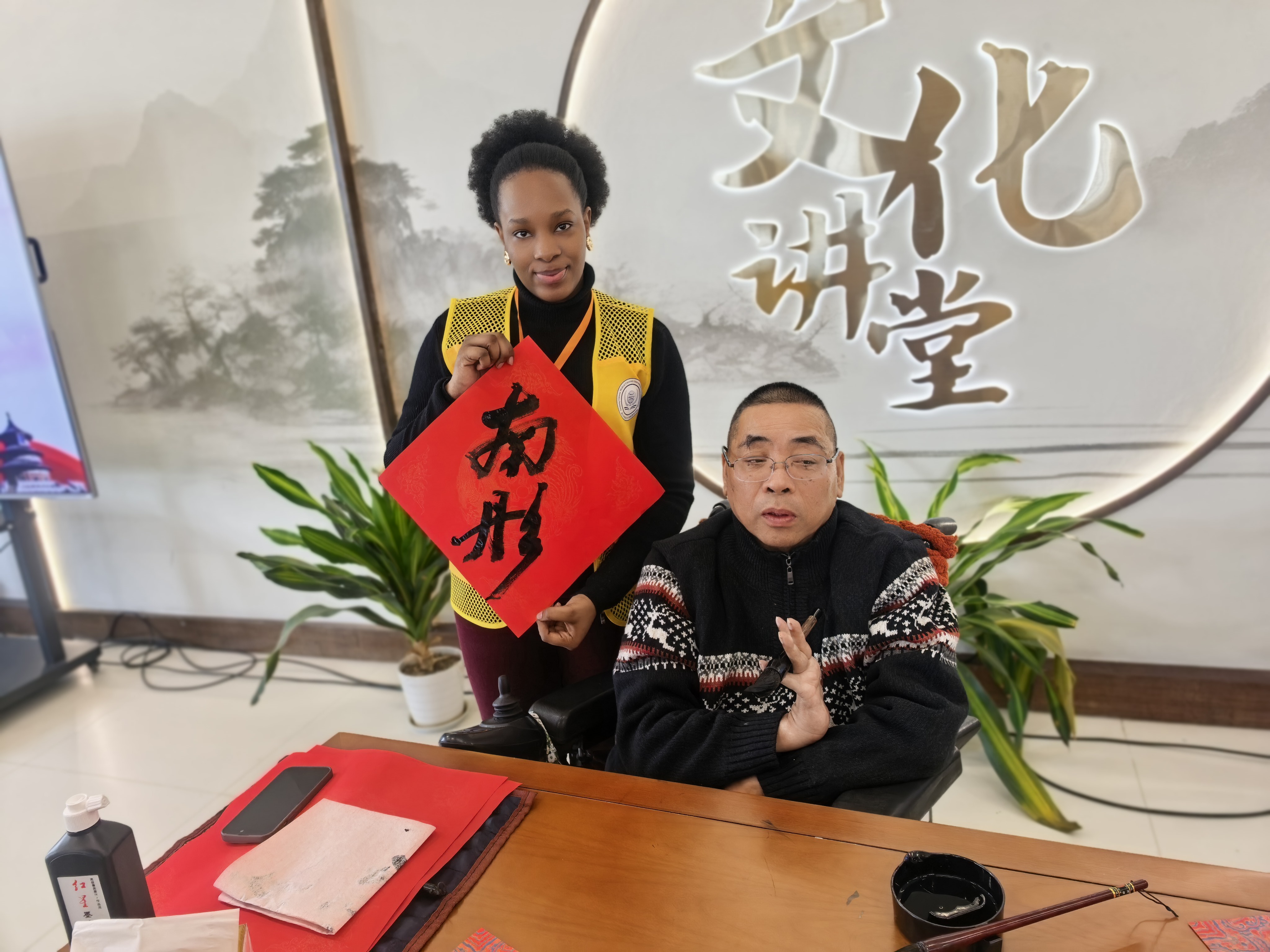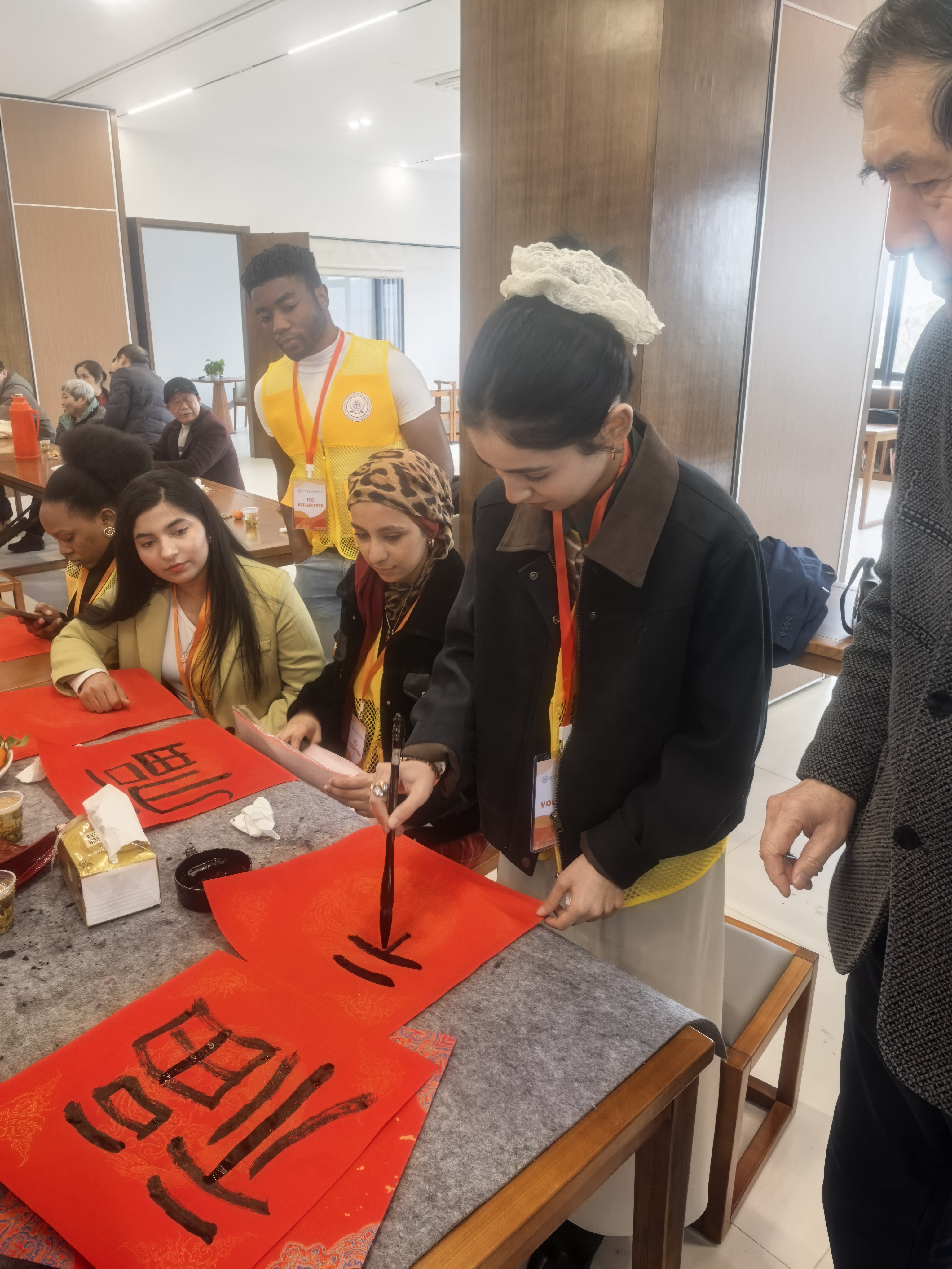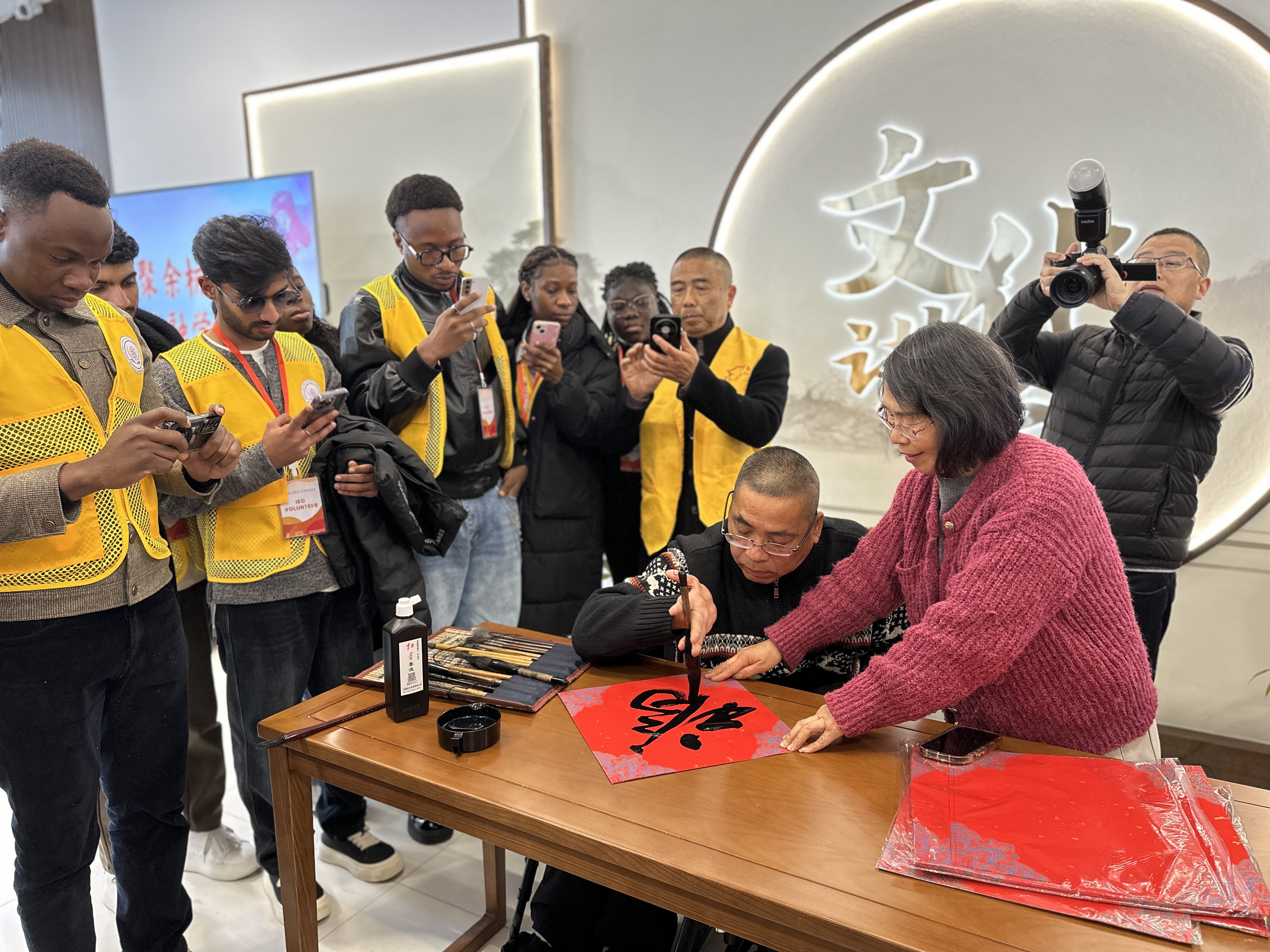 在3月5日学雷锋纪念日前夕,余杭区仁和街道仁杭文化交流中心暖意融融。浙江中医药大学国际交流学院20余位外籍留学生在董敏华院长的带领下走进这里,与农村残障人士携手开展文化助残联谊活动,以青春行动践行雷锋精神,让中外温情与公益爱心在乡村绽放。 余杭仁和素有温度,仁杭文化交流中心深耕文化公益助残,多年来致力打通农村残障人士与外界的交流壁垒,本次活动以“残健共融、文化互通、健康护航”为初心,让雷锋精神落地生根。 活动现场,残疾人书法家王渊鹏当场挥毫泼墨,并教留学生书写“福”字,其他残障朋友耐心指导留学生执笔挥毫,用汉语写出了自己的中文名字;女志愿者还教留学生传统刺绣,穿针引线。来自巴基斯坦的女生绣出了平生第一个刺绣“鱼”,开心得不得了。活动现场墨香与绣韵交织,在一撇一捺、一针一线中传递中华传统文化与新春祝福。留学生们带来精彩异域节目,用歌声与非洲舞蹈搭建友谊桥梁,展现多元文化魅力。依托医学专业优势,留学生们为残障人士开展健康咨询,细致讲解日常保健知识,把贴心服务送到身边。大家还一起包饺子,吃汤圆,互赠文创礼品,在交流中打破地域隔阂、增进友谊。 此次活动既是学雷锋志愿服务的生动实践,也是文化助残、中外交流的创新探索。仁和街道社会事务办徐主任表示将持续以仁杭文化交流中心为平台,汇聚更多爱心力量,让公益助残更有温度、文化融合更有深度,让雷锋精神代代相传、温暖常在。