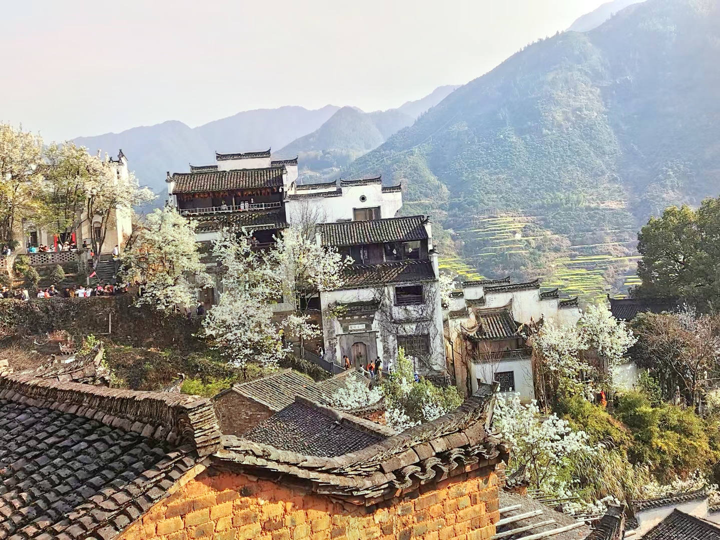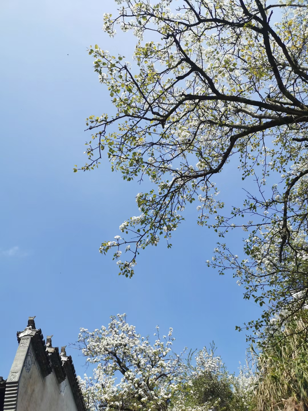 梨花似雪春似梦 宋宣娥 “看,这是什么花?” “桃花?” “樱花?” “不对,是李花。” 新办公楼,毗邻公园。午休时分,我常与同事沿公园湖边漫步。 暮春三月,气温骤升,花儿仿佛约好了似的,一夜之间,哗啦啦全开了,红的,粉的,白的,黄的,这里一团,那里一簇,好热闹。 乱花渐欲迷人眼。同事站在一株开满白色花朵的树下,仰起头,轻嗅花瓣。繁花如雪。她的脸上,也开了一朵朵花。 “这是梨花。”我脱口而出。 “你看,这花色纯白,花瓣五片,边缘略带波浪形,深红色花蕊,花朵成簇,一看就是梨花呀。” “你怎么知道的?” 我愣住了,是啊,我什么时候把这梨花的花容刻进了记忆里? 是童年吗? 童年的记忆里,村里茶树很多,果树不多,只有苹果树,李子树,梨树,零零落落种了几棵在茶园里。 我提着竹篮拔猪草,去得最多的是茶园,确切的说,是到茶园的果树下。 果子成熟的季节,我去得最勤。我总在拔猪草的时候,两眼偷偷搜寻坠落的果子。拨开野草,紫色的李子,或青色的梨,一个,两个,一堆,软软的,硬硬的,藏在草丛里。落在地上的果子,很多果皮已裂。我拣表皮光滑颜色鲜亮的,应该是掉落不久的吧。我把沾满泥土草屑的小手在带着露水的草尖上擦,伸出右手拇指食指,轻轻捏起果子,放左手掌心里一抹,圂囵吞枣咽下肚。然后急急离开。瓜田李下,还是有做贼心虚的感觉,虽然我只拣掉落的果子,可谁说得清呢。 这带着泥土气息的果子,是儿时最美好的回忆。可那些年,我只顾着低头拣拾地上的果实,从未抬头看看那满树繁花。 梨花的模样,是模糊的。 直到那一年春天,我去了婺源。 去婺源,原是为了婺源的油菜花。 我看过一畈连一畈的油菜花海,如黛的远山为背景,觉风景绝美;也看过五彩的油菜花田,如画笔勾勒在青山绿水间,亦觉叹为观止。 听说看油菜花,还得去婺源。 第一站去的是篁岭。到达山脚已下午,沿路的油菜花金黄灿烂。篁岭地势较高,山上的梯田油菜花,比山下开得稍稍晚些,有些还黄绿相间,向阳处是黄灿灿的,开得好闹。游人如织,头戴花环,穿梭花海。 不时有老人过来兜售用油菜花编织的一两朵桃花点缀的花环。 花开至极盛,反倒没了拍照的心情。我们来来回回,只是闻闻花香。 还是去村里转转吧。有人提议。 篁岭,是一个有着500多年历史的古村落,房子建在半山腰,沿着山势错落有致。 拾阶而上,转角处,忽见一株高大的树,斜倚白墙,虬枝斜伸,树上开着洁白的花,花瓣随风起舞,轻轻飘落在白墙黑瓦上。阳光柔和地洒在树上,花枝轻漾,花瓣洁净如玉。不浓艳,却很温柔,是我喜欢的色调。 再往上走,这团团簇簇的树,或隐在斑驳的土墙边,或立于窗棂前,或从高耸的马头墙探出,一树,两树,点缀得恰到好处。凭栏倚窗,只见蓝天白云,白墙黑瓦,和一树一树洁白如雪的花,相映成趣。 “这是什么花?从来没有见过这么漂亮的花。” “这是梨花呀。” “梨花?”我愕然。 梨花,李花,樱花,我一直傻傻分不清。 印象中的梨花,花小,单瓣,枝干细长,弱不禁风的样子。 我抬头仰望,细细端详:这里的梨花,花团锦簇,很大朵,梨树也高高大大,或挺拔,或斜伸,自然舒展,有着线条之美。 第二站,江岭。江岭是中国四大油菜花海之一,有十万亩梯田油菜花海。那天,下着小雨。车行盘山公路,连绵的梯田如链似带,远处的山峦薄雾缭绕,一望无际的油菜花海像镀上了金。若只有金黄一色,未免太单调了,那就镶嵌点白色吧。白配黄,不张扬。于是,旷野之上,就见一树两树梨花,傲然独立。 斜风细雨,把江岭梯田洇染成水墨画。 同行的朋友,耐心地教我们如何构图。以灰白色土墙做背景,截取几条花枝入画。土墙沧桑,梨花温婉。 雨丝沾湿花瓣,竟然比晴天更添几分楚楚。 去婺源,是因为婺源的油菜花。回来后,念念不忘的却是那一树树梨花。 “欲黄昏,雨打梨花深闭门”。“劳劳燕子人千里,落落梨花雨一枝”。“一别如斯,梨花落尽月又西”。突然想起读过的“梨花诗”。年少不知诗中意,此刻,才真正懂得其中况味。 梨花似雪春似梦。想起那些曾经在我生命里来来去去的人。所幸,我还有看花的心情;所幸,还有陪我一起看花的人。 “你在想什么呢?”一声问话打断了我飘远的思绪。同事一脸疑惑地盯着我。 有花瓣落在我肩头,携着细碎的花香。 我回她一个微笑,挽起她的手,“快走,前面还有花呢。”