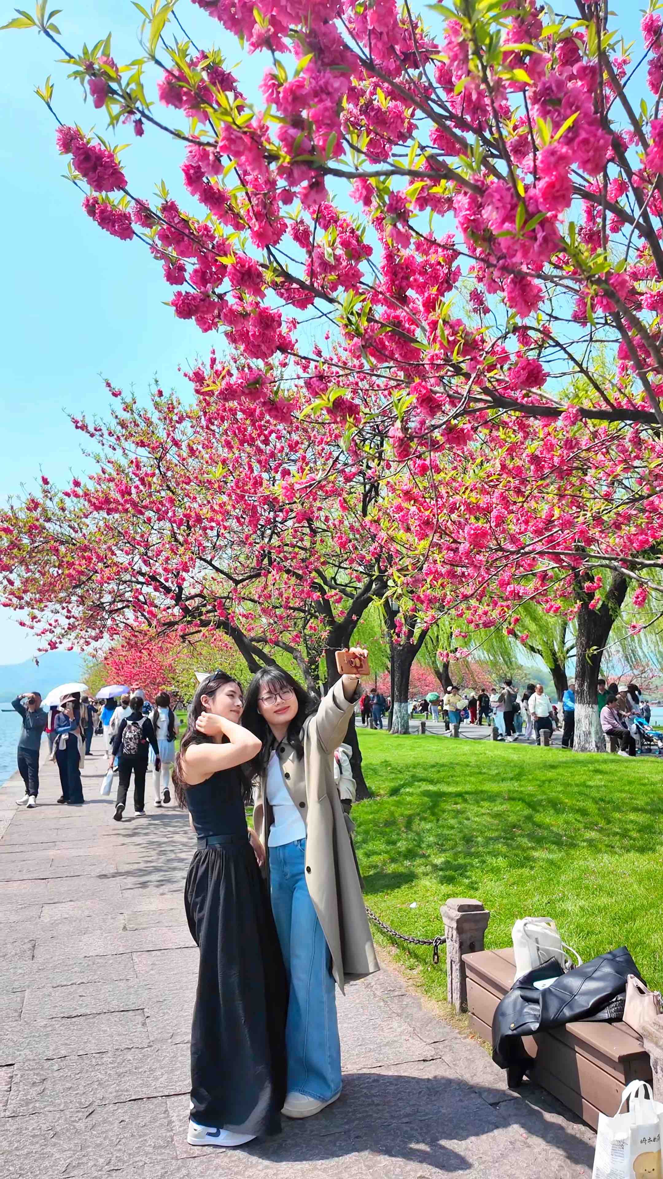 西湖美景四月天,桃红柳绿醉春烟。#杭州西湖#治愈系风景 #镜头里的春日美景 #感受春的气息