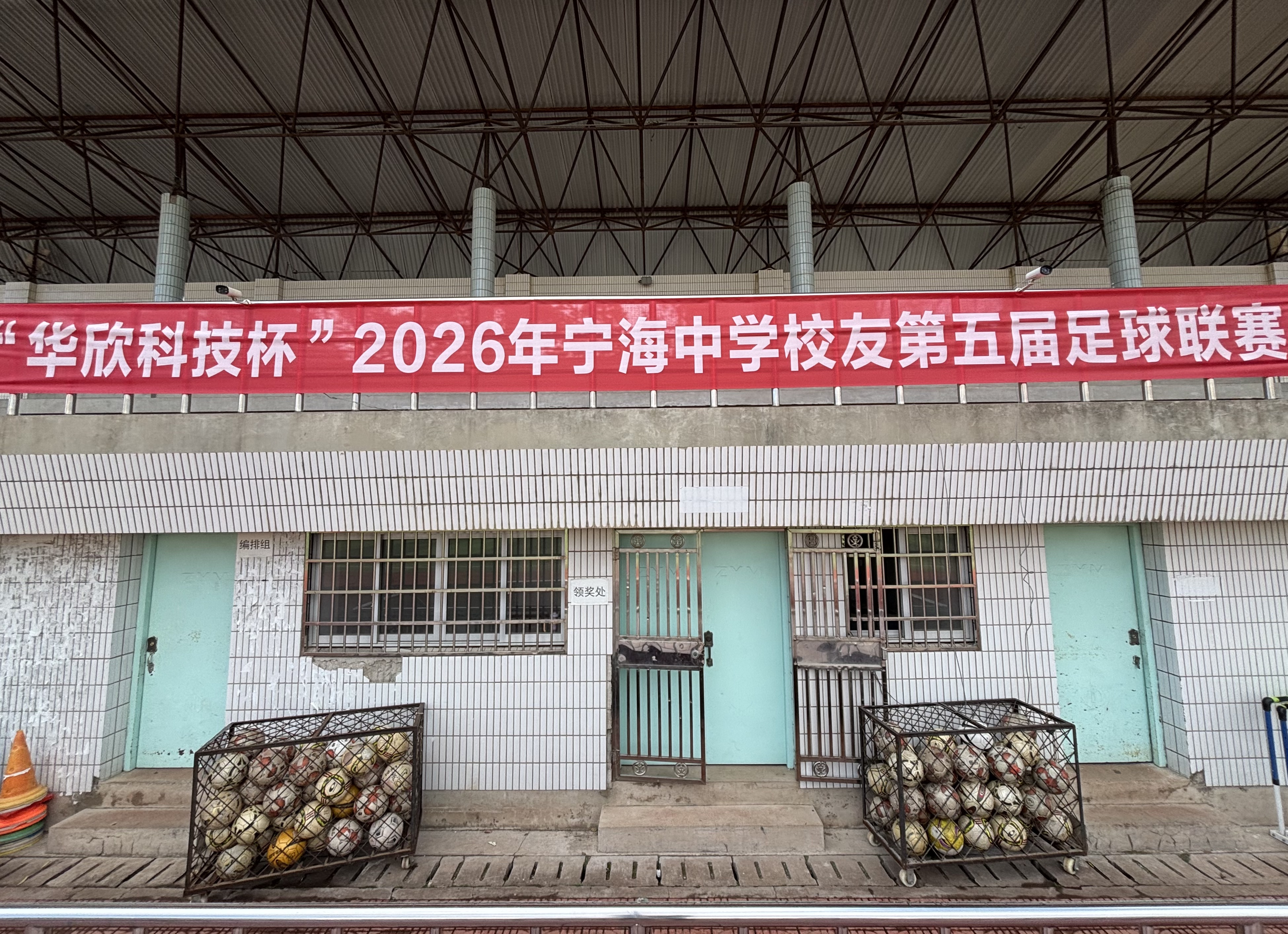 第五届校友足球赛的横幅挂起来。趁周末空,老猫约我一起到母校挂横幅,整理球网,为即将开赛的校友赛尽点绵薄之力。