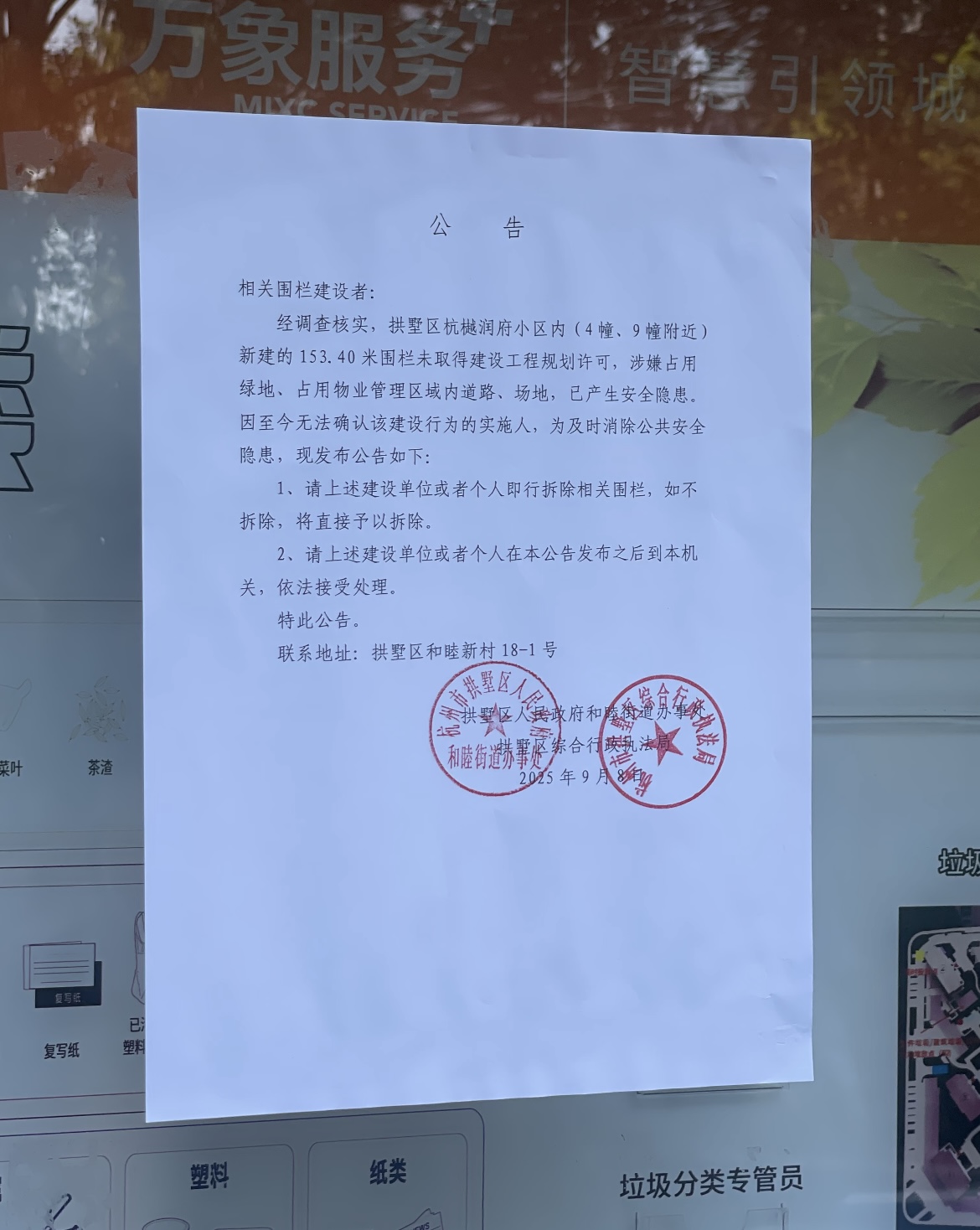 勒令拆除!有公租房的小区不能装围栏 杭樾润府之前因为小区业主和公租房住户之间的矛盾,业主把公租房的部分用围栏挡住了,不让公租房住户使用小区配套,一度引发较大争议。今天小区所属和睦街道发话了,要拆。 是不是其他给公租房做围栏的小区,都要拆?比如揽云锦绣……