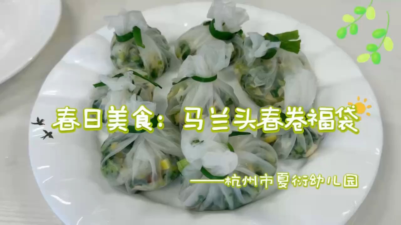 春风入夏幼,食趣伴成长🌱杭州市夏衍幼儿园把春日的鲜嫩马兰头,包进酥脆的春卷福袋里,一口咬下,是春天的味道,更是童年的甜✨