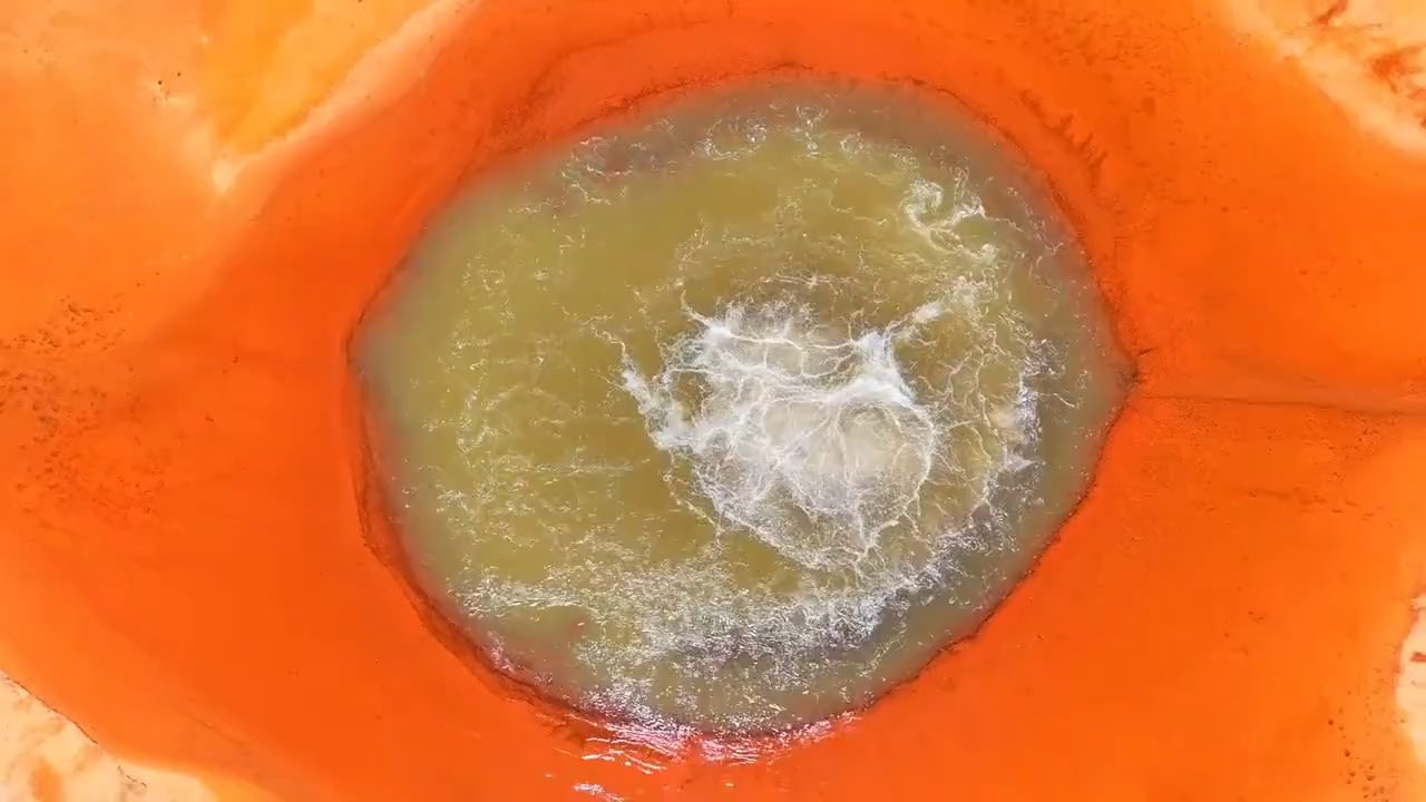 昆仑山下,阿拉尔草原的腹地,藏着一只‘恶魔之眼’。泉水含硫,寸草不生,流经之处皆是锈红与金黄交织的疤痕。泉水咕噜作响,像大地深处传来的低语。它不是风景,是警告。